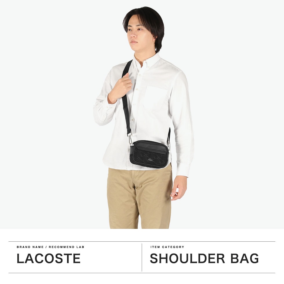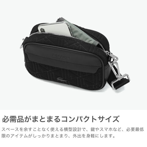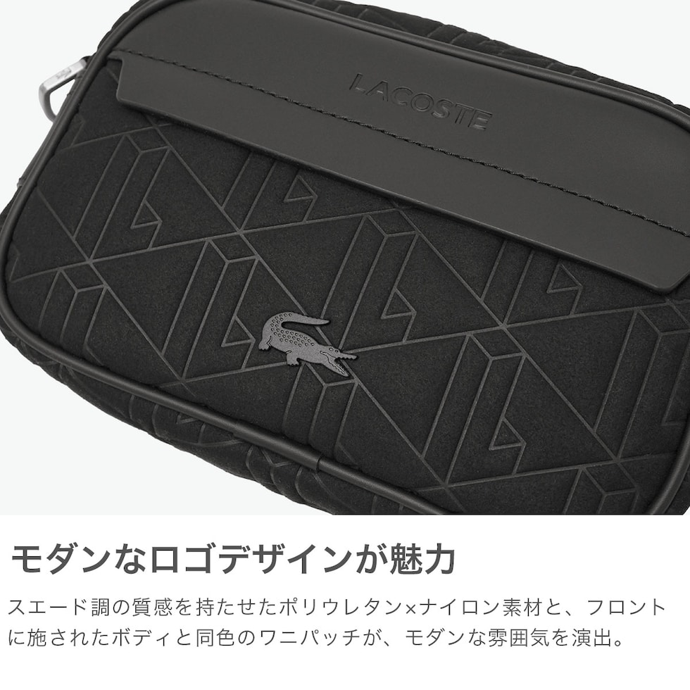ラコステ ショルダーバッグ メンズ レディース ブランド 小さめ LACOSTE バッグ 斜めがけ 大人 かっこいい 上品 軽量 おしゃれ ミニショルダー 斜め掛け 黒 ザ ブレンドシーズナル モノグラムコンビレポーターバッグ NH5175BG