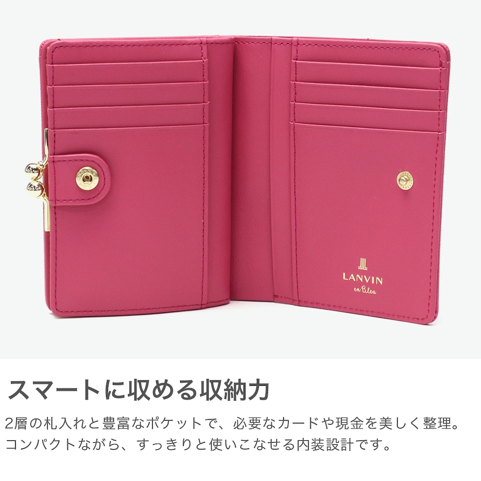 ランバンオンブルー 財布 レディース 二つ折り LANVIN en Bleu 二つ折 ブランド 本革 レザー 牛革 折り財布 口金 がま口 小銭入れあり 可愛い おしゃれ シンプル 上品 無地 大人 リュクサンブール 口金二つ折り財布 482818