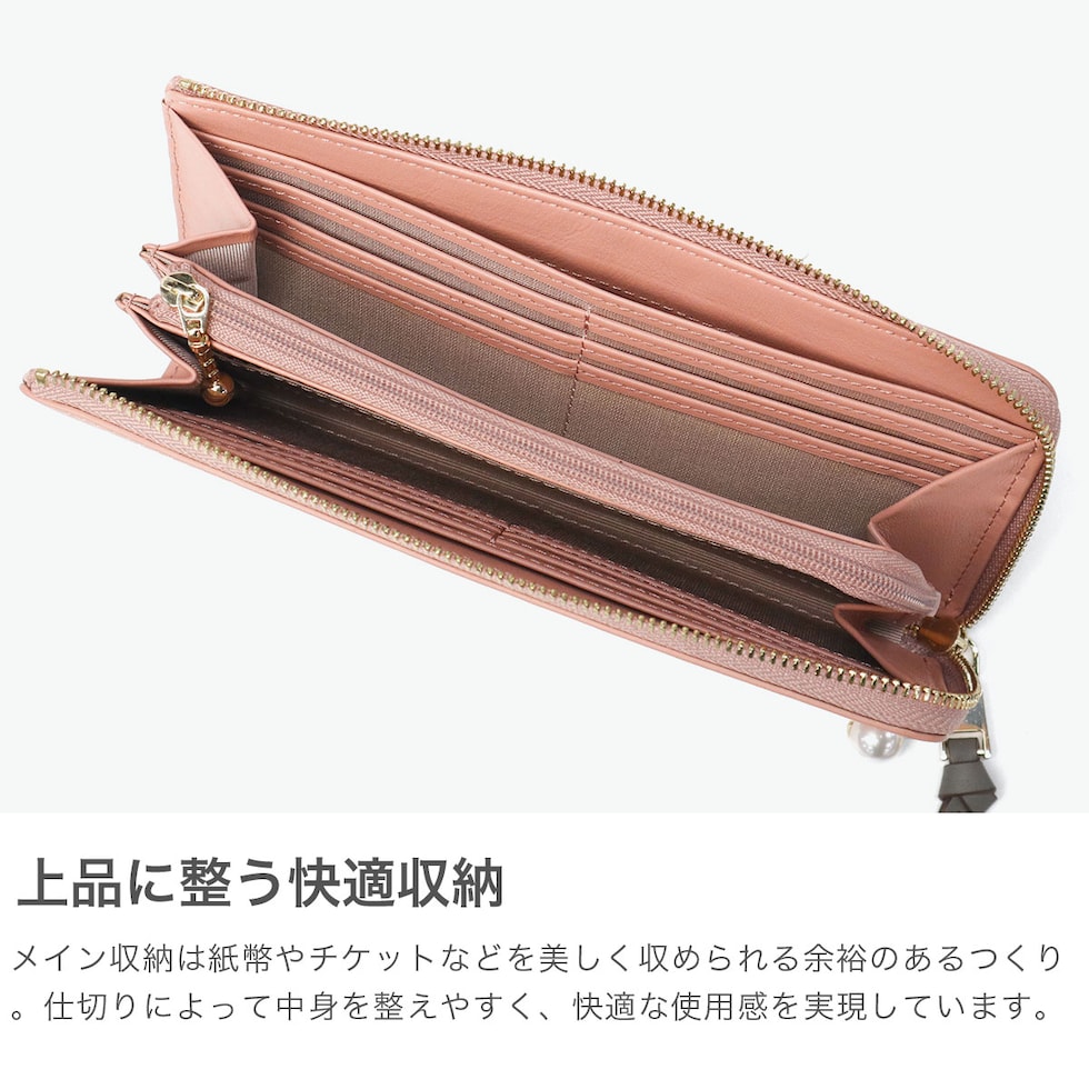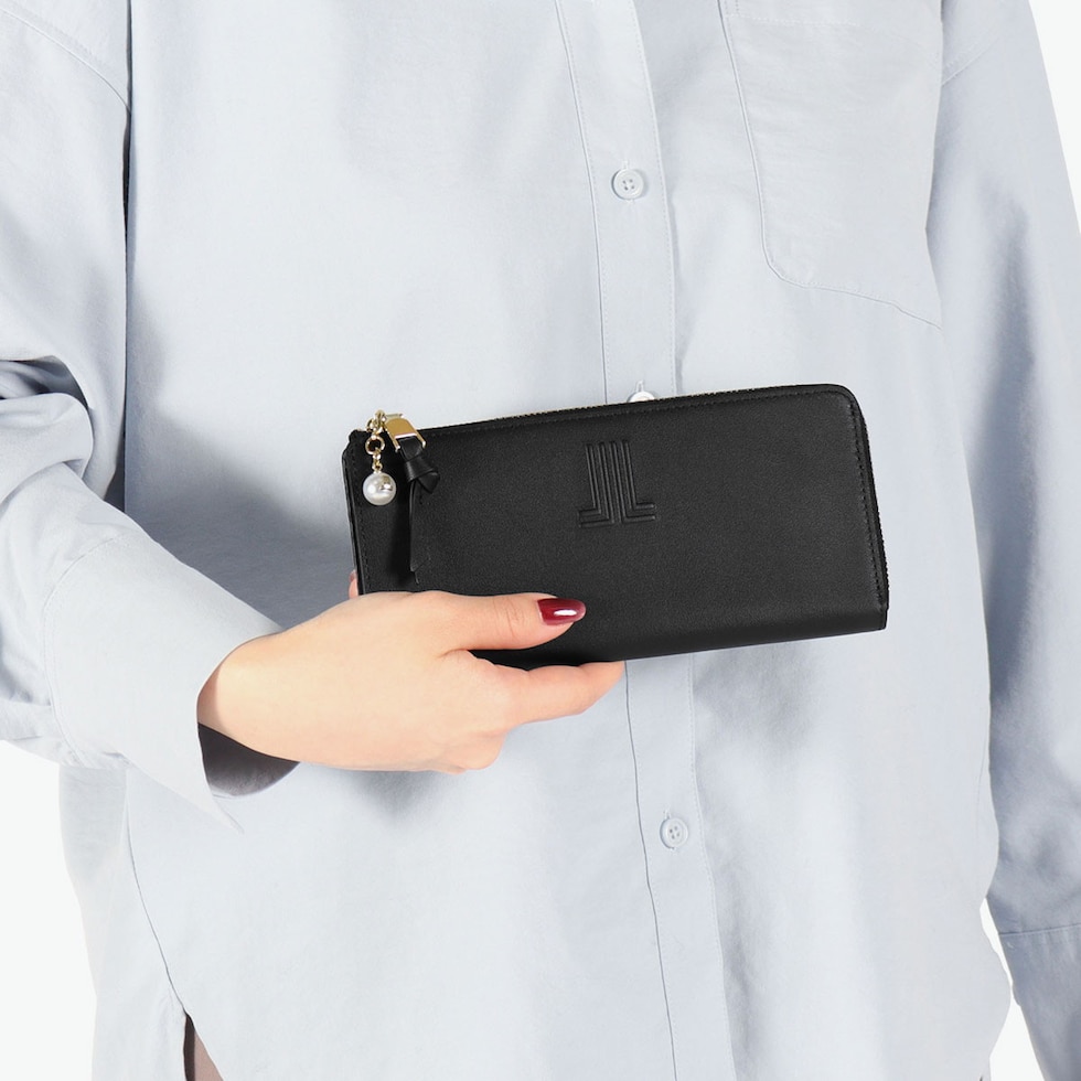無駄のないデザイン ブランドを象徴する“JL”ロゴを立体的に刻印したシンプルで洗練されたデザインの「イエナ」シリーズ。こちらは、L字ファスナー長財布です。無駄を削ぎ落としたミニマルなデザインながら、オリジナルのパールチャームがさりげない華やかさを添え、バイカラーの引き手で遊び心もプラス。手ざわりの良い滑らかなレザーが手になじむ、実用性と美しさを両立したアイテム。上品で落ち着いたカラーは、オンオフ問わず活躍し、自分用はもちろんギフトにもおすすめです。 |