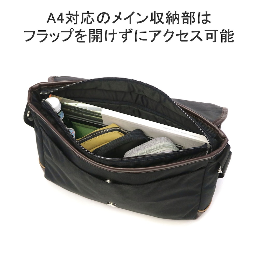 | デザインと機能性を両立 大人のショルダーバッグ ポリエステル生地を使用したカジュアルシリーズ『creature/ クリーチャー』のショルダーバッグです。コンビカラーの配色が普段のコーディネートにアクセントをプラス。A4サイズの本体には便利なポケットも多数搭載され、デザイン性だけでなく実用性も兼ね備えたアイテムとなっています。通勤から普段使いまでシーンを選ばず活躍するアイテムとなっています。 |