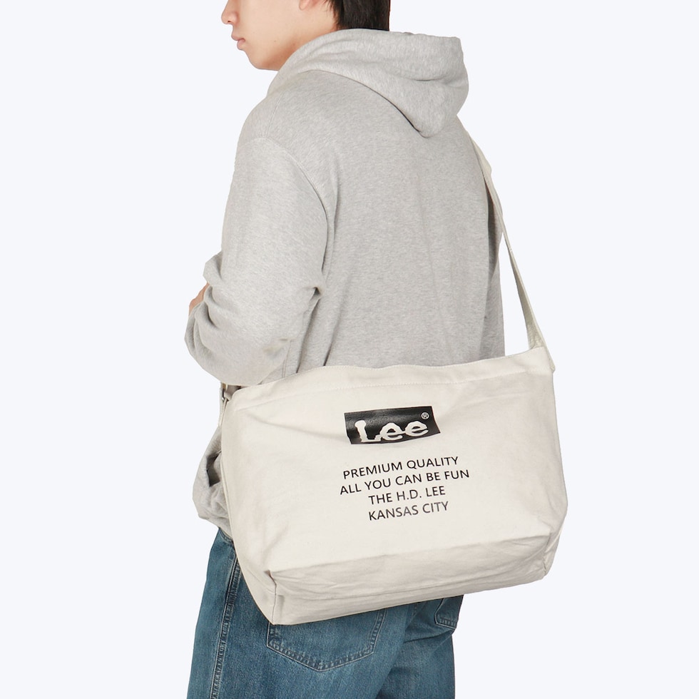 「Lee」のブランドロゴがアクセントになった、シンプルでカジュアルなショルダーバッグです。厚手のコットンキャンバス生地を使用した、丈夫な作りが魅力。性別を問わずユニセックスでお使いいただけるデザインと、旅行やお出かけなど幅広いシーンで活躍する大容量サイズが嬉しいアイテムです。
