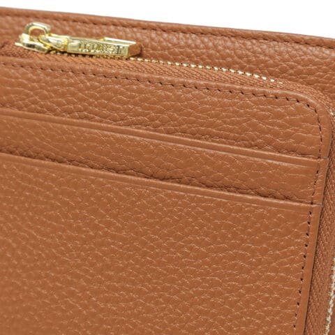 永く寄り添う上質な革 上質かつシンプルなデザインのレザーウォレット。女性の手に収まるコンパクトなサイズ感ながら、8枚分のカード収納やポケット、仕切り付きのお札入れなど、十分な機能を備えています。外付けの小銭入れはじゃばらマチで大きく開き、出し入れもスムーズです。取り外し可能なタッセルチャームが上品なアクセントに。くたっと柔らかいレザーは使うほどに手に馴染み、自分だけの風合いへと育ちます。 |