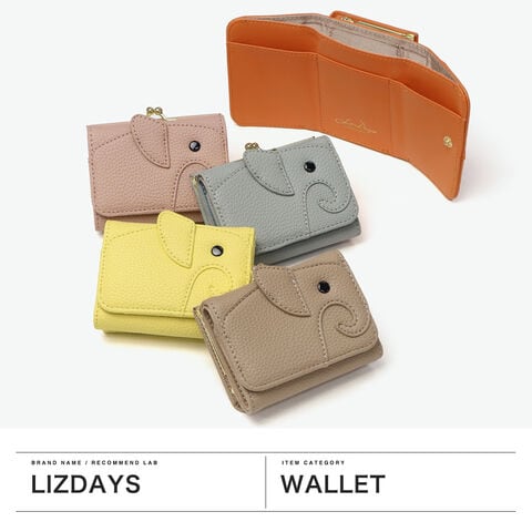 【メール便】【メール便で送料無料】 リズデイズ 財布 コンパクト 二つ折り LIZDAYS ブランド 三つ折り かわいい おしゃれ BOX型小銭入れ 小さめ ミニ コンパクト 象 スキミング防止 がま口 ミニ財布 レディース ゾウ型 lz-65401