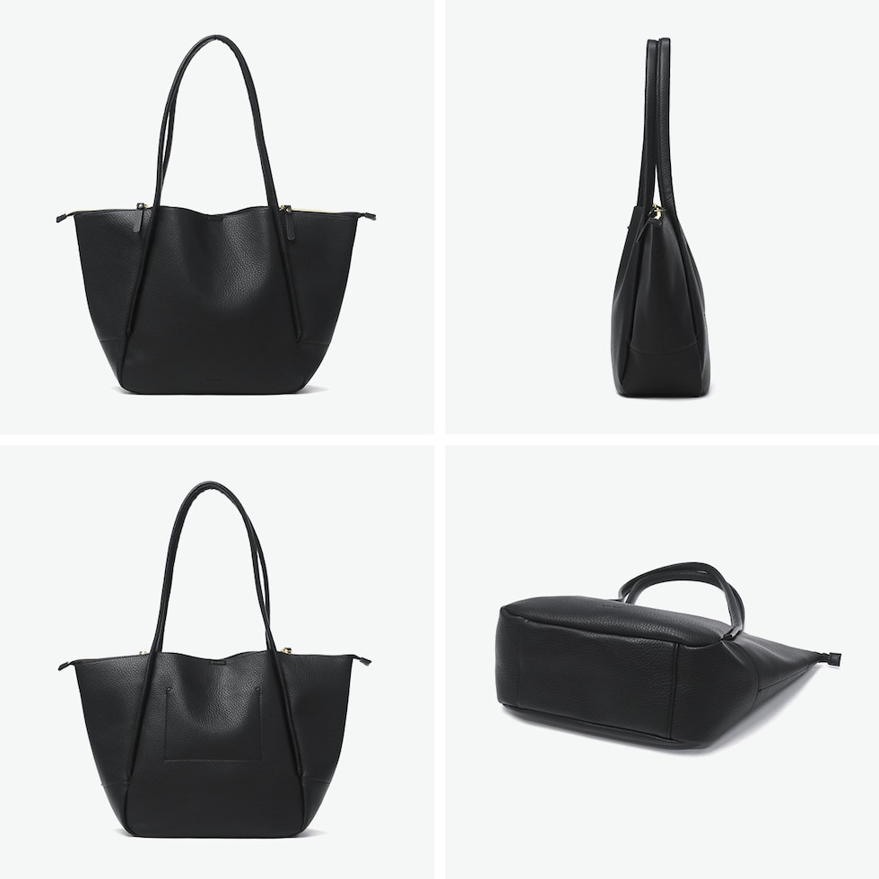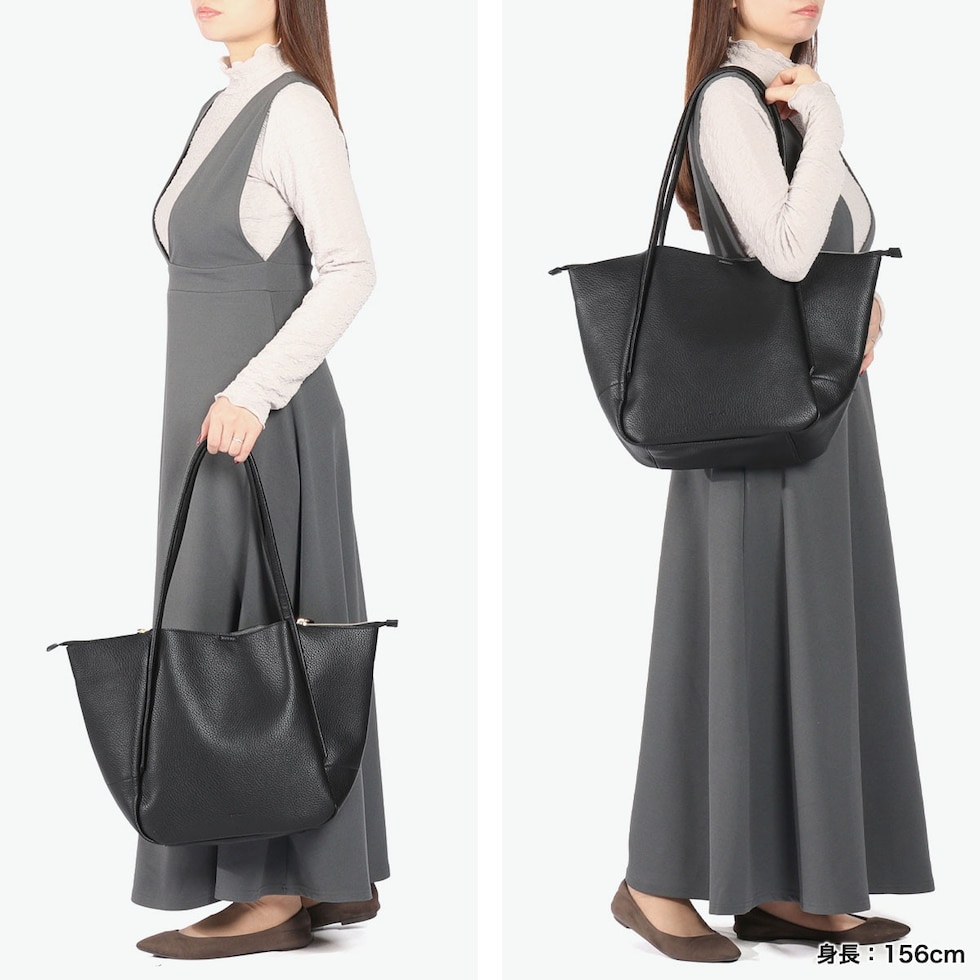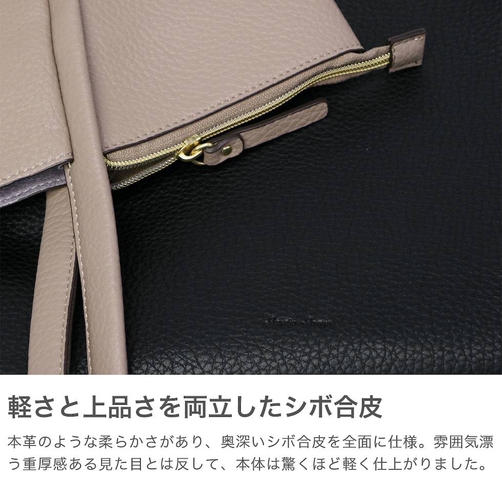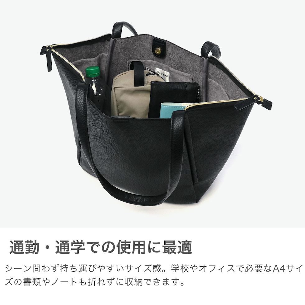 きちんと上品トート 「カジュアル」と「きちんと」の両立が叶うレトロシボシリーズ。本革のような柔らかさがある奥深いシボ合皮を使用し、重厚感のある見た目ながら驚くほど軽い仕上がりです。こちらのトートバッグは、メイン開口部を全部開けなくてもサイドポケットにアクセスできる便利な仕様。さらに、両サイドには小物用のポケット付きで、頻度の高いスマホやパスケースなど収納できるので使い勝手も抜群です。 |