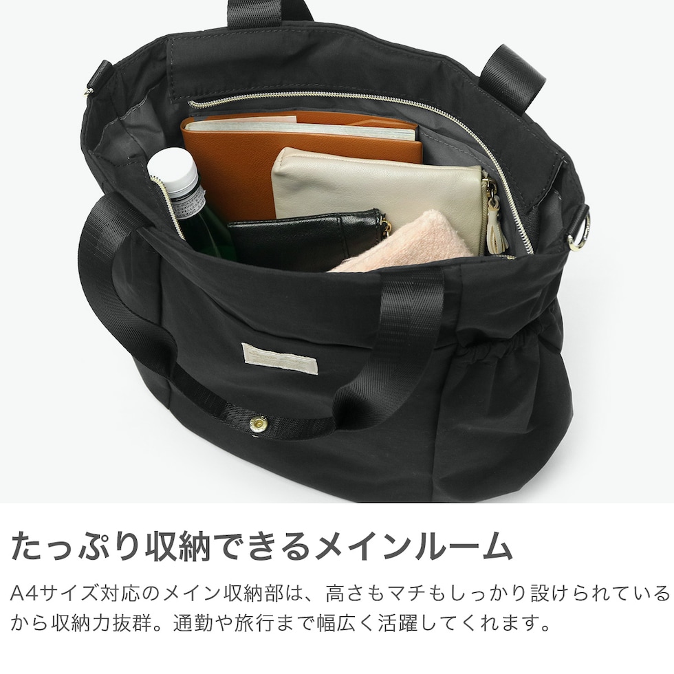 ふわっと軽く、丸みを帯びたフォルムとくすみカラーがかわいらしい。"洗濯機で洗える"にこだわった洗えるかばん「fuwari」シリーズの2WAYトート。サイドポケットは深めなのでペットボトルや水筒、折り畳み傘も収納可能◎A4サイズが収納可能で、荷物をたくさん入れられるから通勤や旅行にお勧めです。