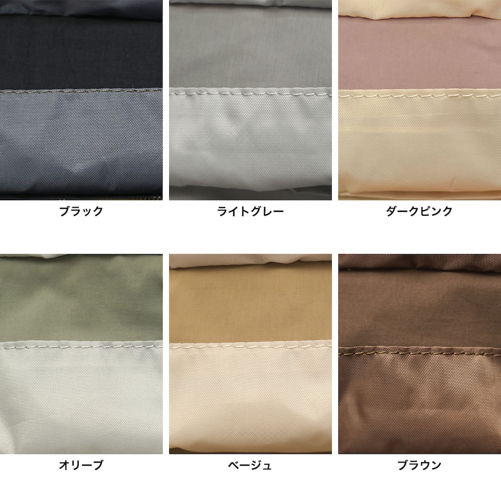 カラーブラック、ライトグレー、ダークピンク、オリーブ、ベージュ、ブラウン