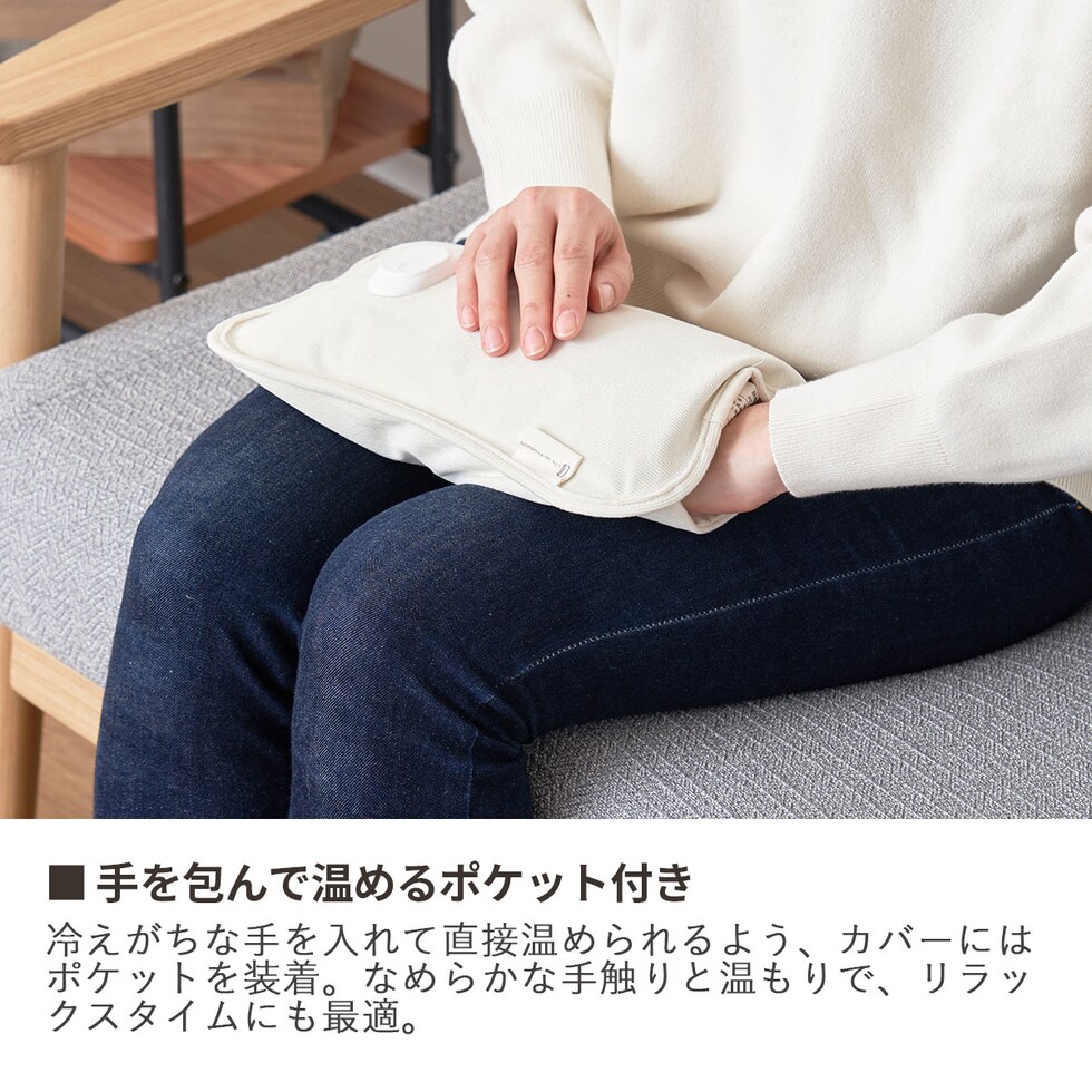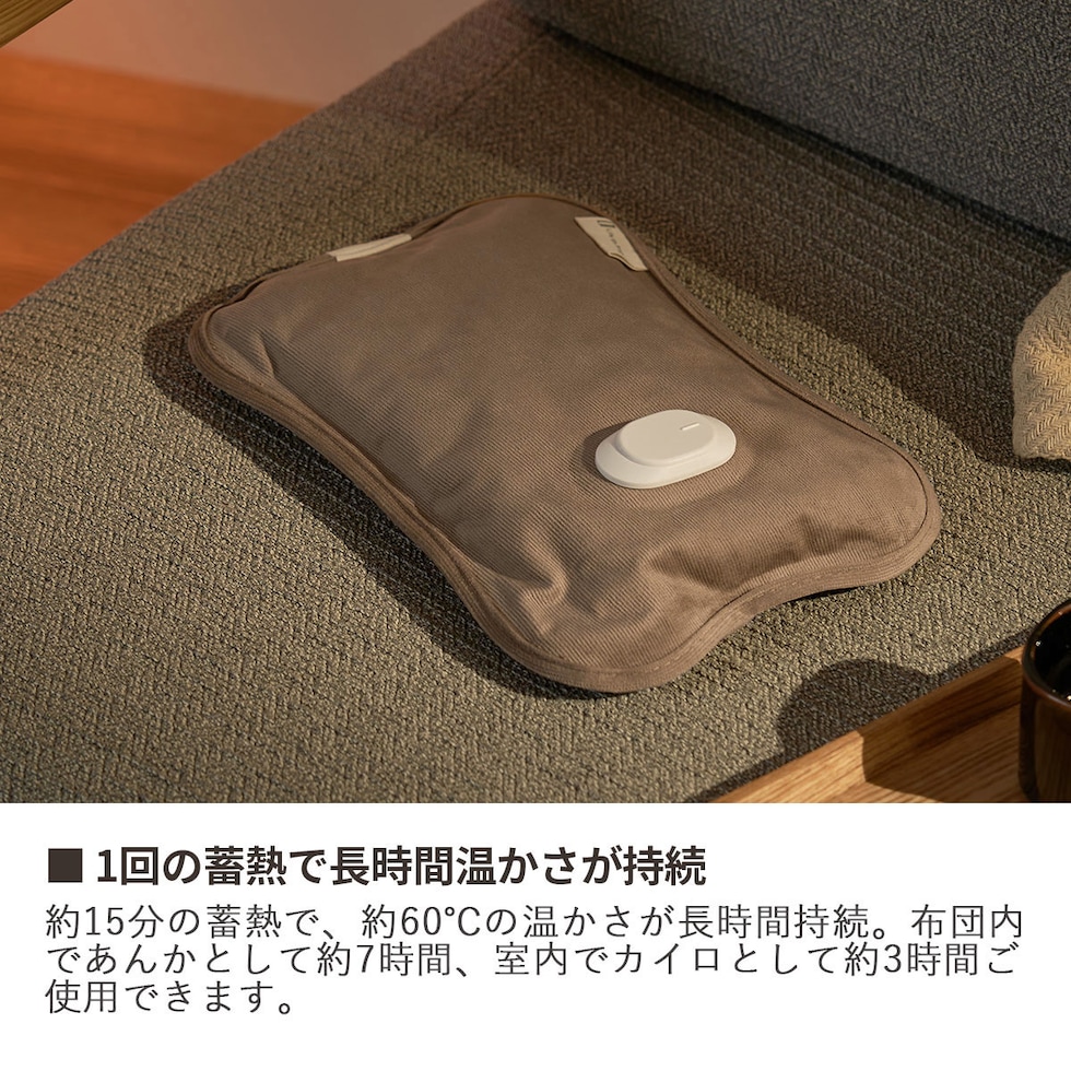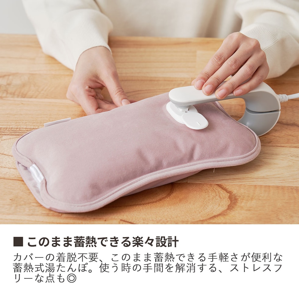 心地よい温もり感じる 手軽な蓄熱式湯たんぽ カバー着脱不要で蓄熱できる手軽さと、冷えがちな手を直接温められるポケットが便利な蓄熱式湯たんぽ。生地はニュアンスカラーで触り心地が良いコーデュロイ素材を採用し、インテリアにも馴染みます。 |