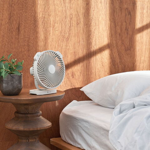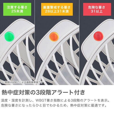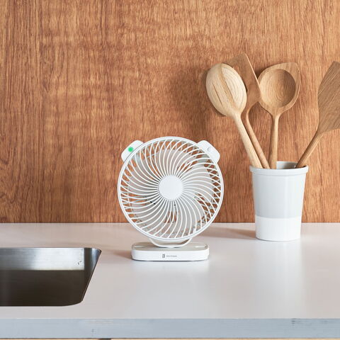 人感センサーを搭載した、壁掛け・卓上どちらも使えるコンパクトなUSB充電式ファン。暑さ指数表示で熱中症対策もばっちり。静音設計&4段階風量調節で快適に使えるアイテムです。