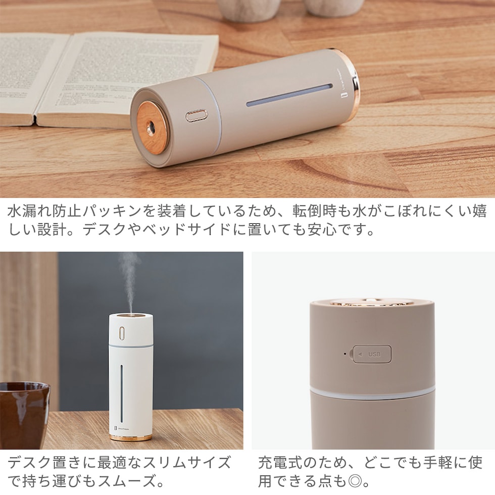 【正規品1年保証】 ライフオンプロダクツ 加湿器 小型 Life on Products ミニ 卓上 寝室 ミスト 充電式 かわいい おしゃれ コンパクト オフィス デスク 車内 小さめ 軽量 150ml 充電式スリム加湿器 LCAHF012