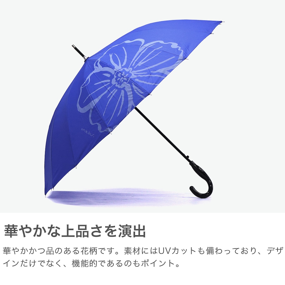 マブ 長傘 レディース 雨傘 大きめ mabu 16本 ジャンプ式 晴雨兼用 ブランド 軽量 花 かわいい おしゃれ ジャンプ UVカット 紫外線カット UV 遮蔽 日傘 16本骨 58cm カラフル ベーシックジャンプ16