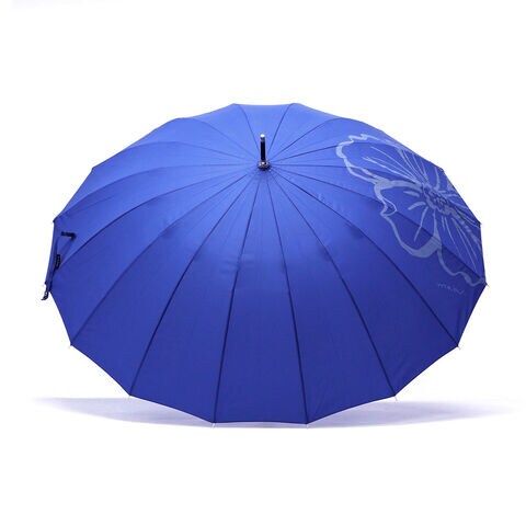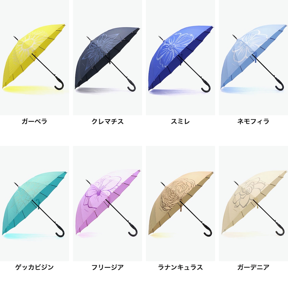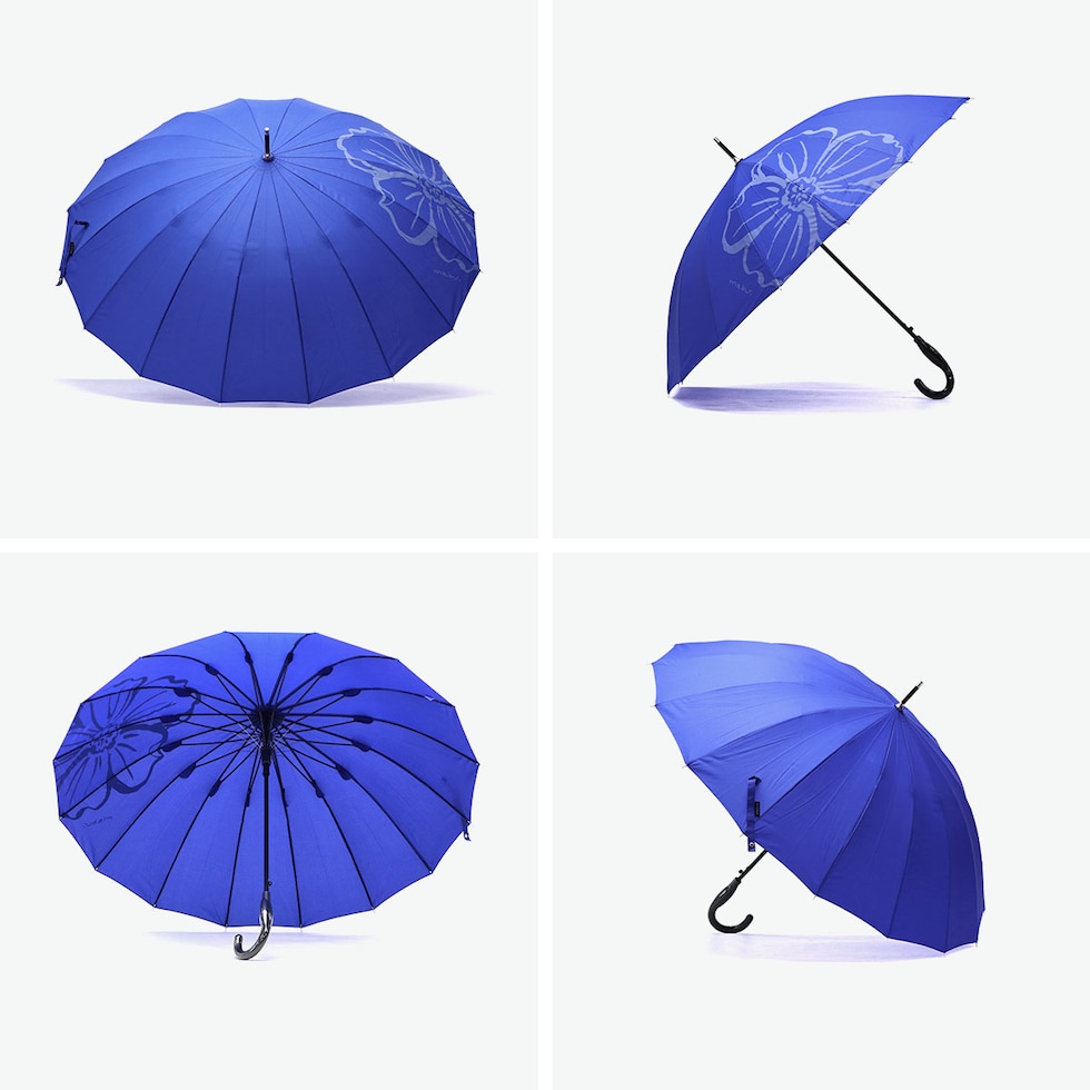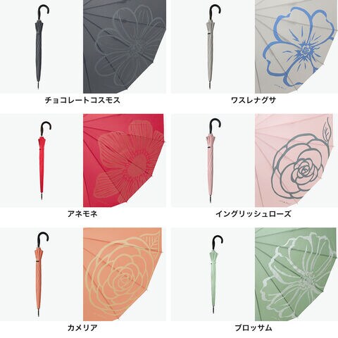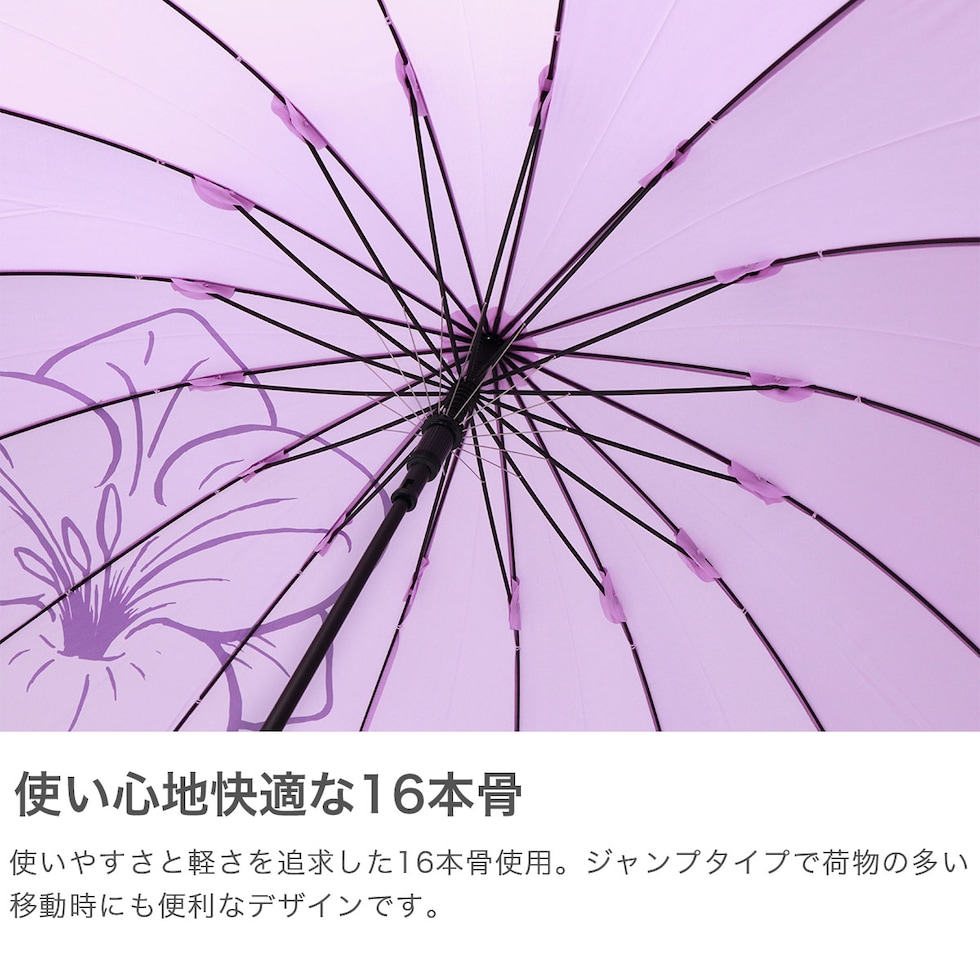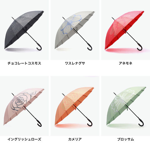 | 一輪の花が目を引く 鮮やな晴雨兼用傘 使いやすさと軽さを追求しながら改良が重ねられた16本骨ジャンプ傘。従来品の親骨58cmに比べ約20%軽量化し、UVカット機能もプラス。雨傘・日傘として、今まで以上に快適にお使いいただけます。 |