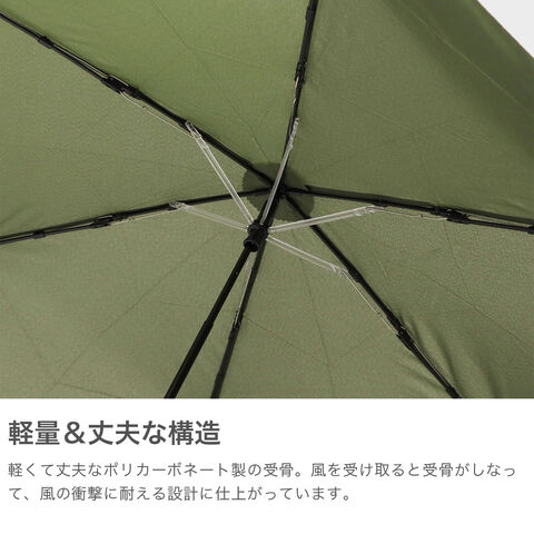 | シンプルで使いやすい コンパクトな晴雨兼用傘 雨・晴・風にマルチに対応する晴雨兼用の折りたたみ傘。ポリカーボネート製の受骨がしなり、風の衝撃に耐える丈夫な構造がポイントです。携帯サイズはそのままで開いた直径を大きくし、さらに便利な使い心地に。シンプルな無地のデザインで年齢性別問わずお使いいただけるアイテムです。 |
