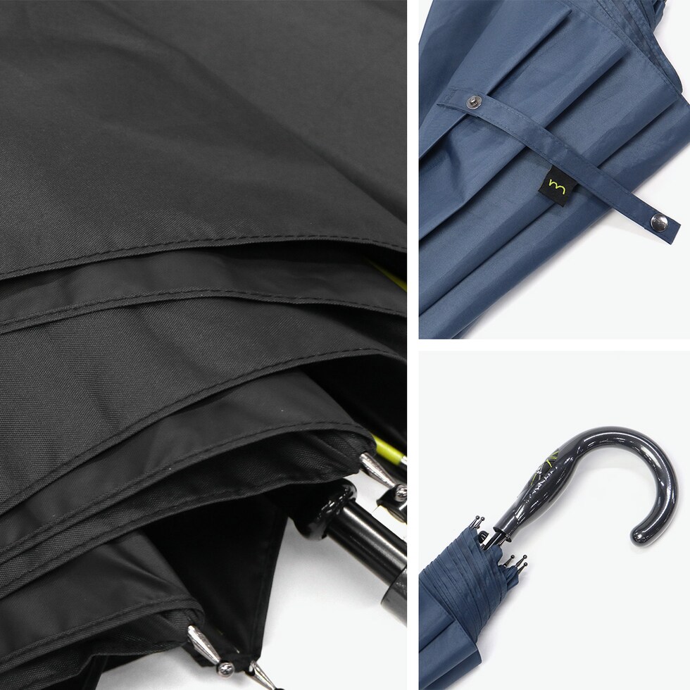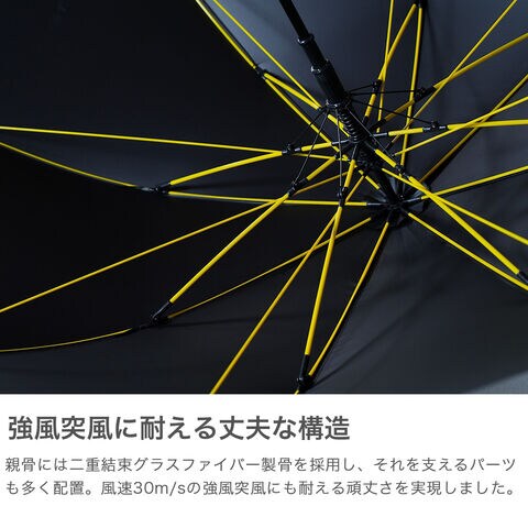 頼れる大きめ長傘 強風や突風に強いタフな構造に加え、快適な水切れが続く耐久撥水加工と雨の浸透を防ぐ高耐水加工により、強い雨に対応する豪雨モデルの長傘です。荷物も濡れにくい親骨65cmの大きめサイズで、体をしっかりカバーします。UVカット90%以上で晴れの日にも対応。シンプルなデザインで、毎日の通勤・通学に活躍します。 |