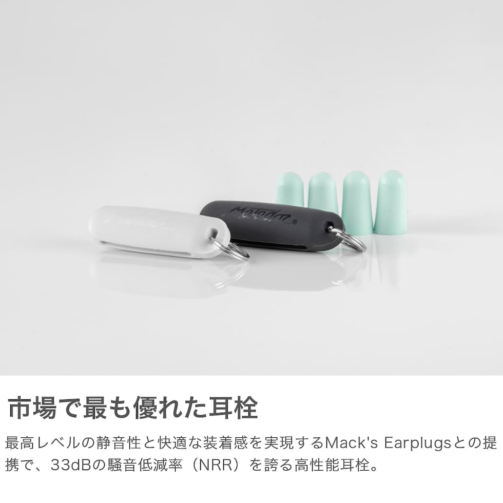 防音&快眠の必需品! 旅行や飛行機内での睡眠、いびきや騒音対策に最適な耳栓とシリコンケースがセットになり登場。アメリカ製のMack's Earplugsのオリジナル耳栓は、最高レベルの静音性と快適な装着感を誇ります。柔らかいシリコンケースは鍵やバッグに装着でき、持ち運びにも便利。黒と白のケース2個と耳栓2セットが付属し、家族や友人同士で使用できます。 |