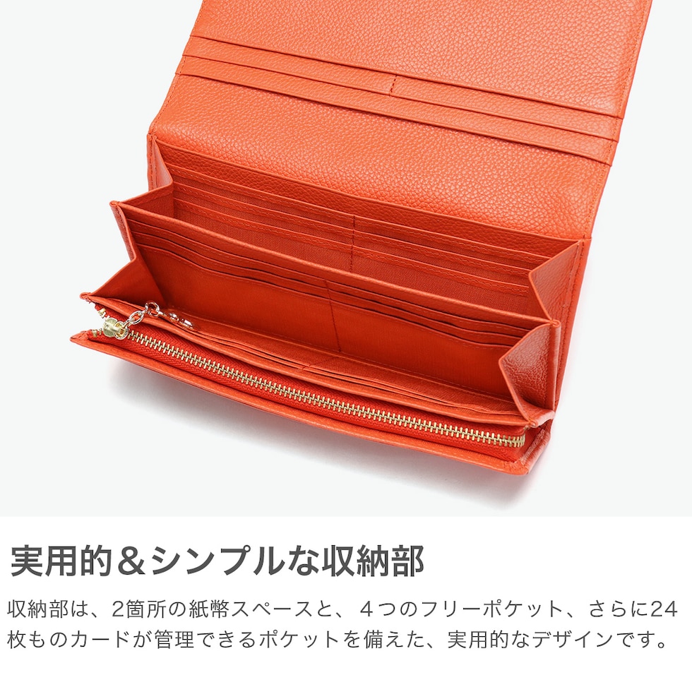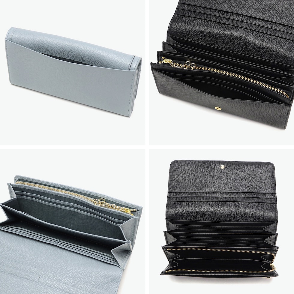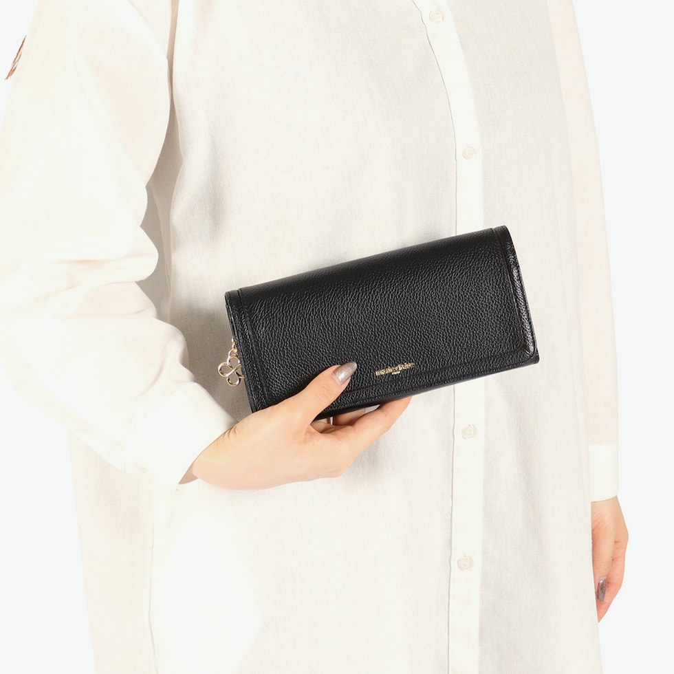 | 大人の手元を彩る 上品ウォレット 牛革にシュリンク型押し加工を施した傷や汚れが目立たず、柔らかく上質な手触りが魅力の『Carrousel』シリーズの長財布です。シンプルなデザインに、ゴールドのロゴと、ブランドアイコンでもあるクローバーのチャームが華やかさを添えます。カード収納力も抜群で、実用性とデザイン性を兼ね備えた、大人の女性にぴったりのアイテムです。 |