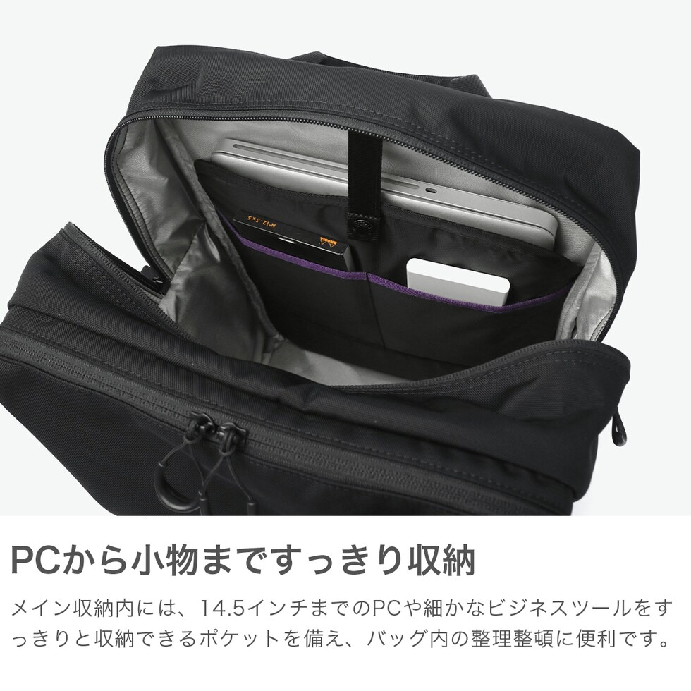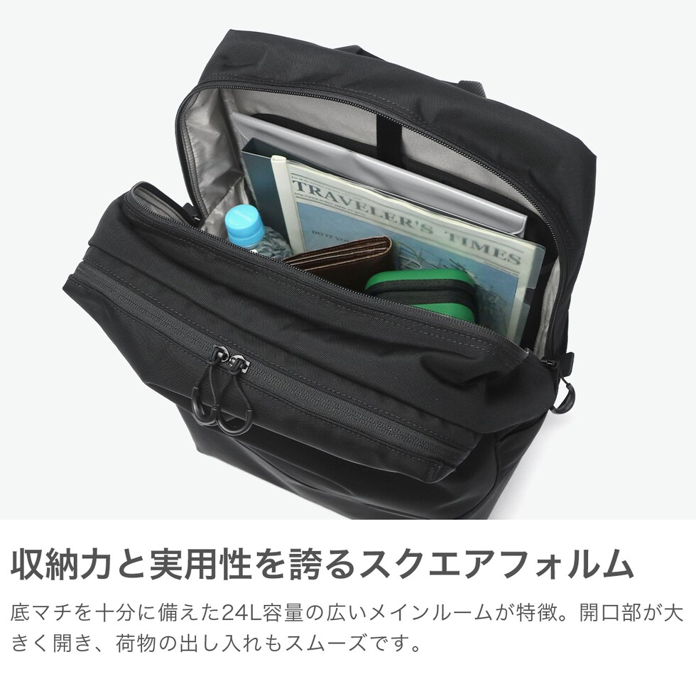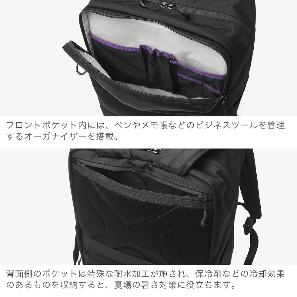 | 必要な機能を詰め込んだ ビジネスリュック 24リットルの容量を備えたB4サイズ対応のバックパック。メインルーム底部のマチ幅が広く、収納空間を大きく確保した構造となっているため、軽さと高い収納力を誇ります。軽量樹脂フレーム内蔵により、型崩れしにくく、自立しやすいのもポイントです。 |