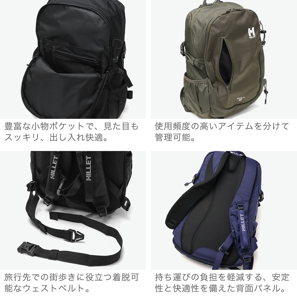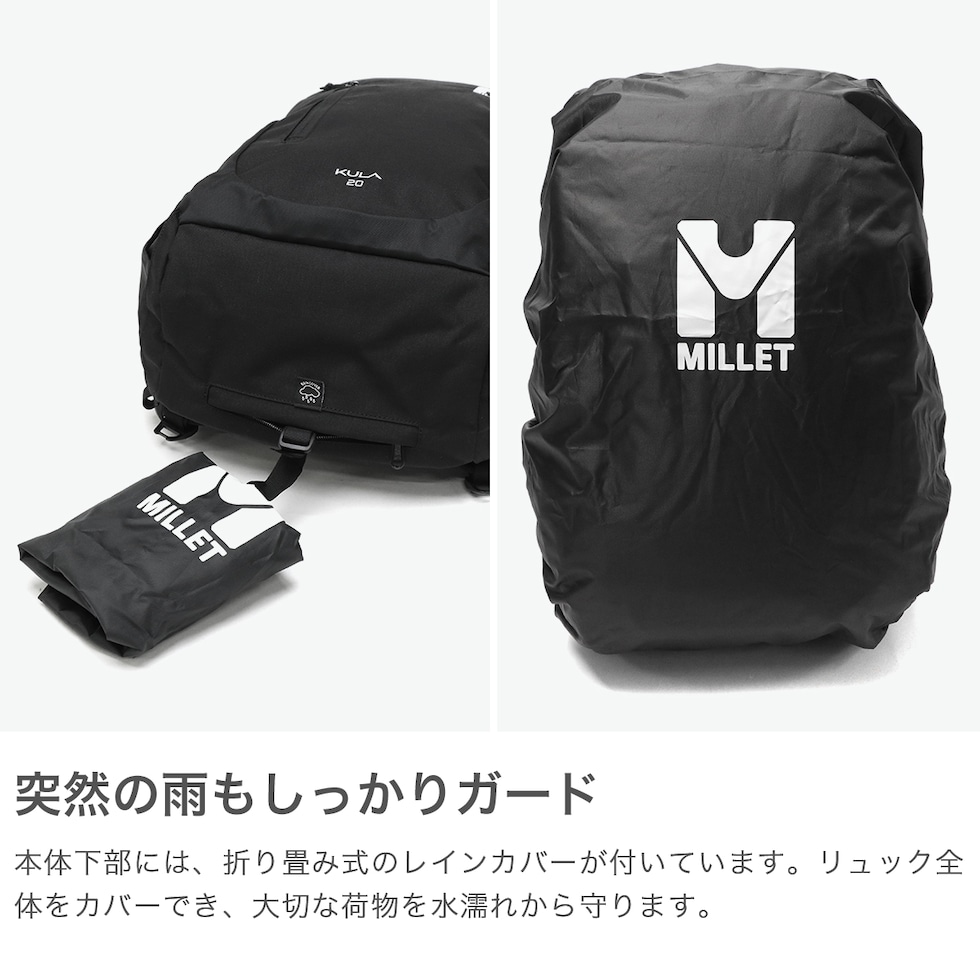 【正規品2年保証】 ミレー リュック メンズ レディース 通学 小さめ MILLET おしゃれ デイパック 普段使い 通勤 ビジネス バックパック A4 20L レインカバー アウトドア 旅行 シンプル 黒 ブランド KULA クーラ 20 MIS0623
