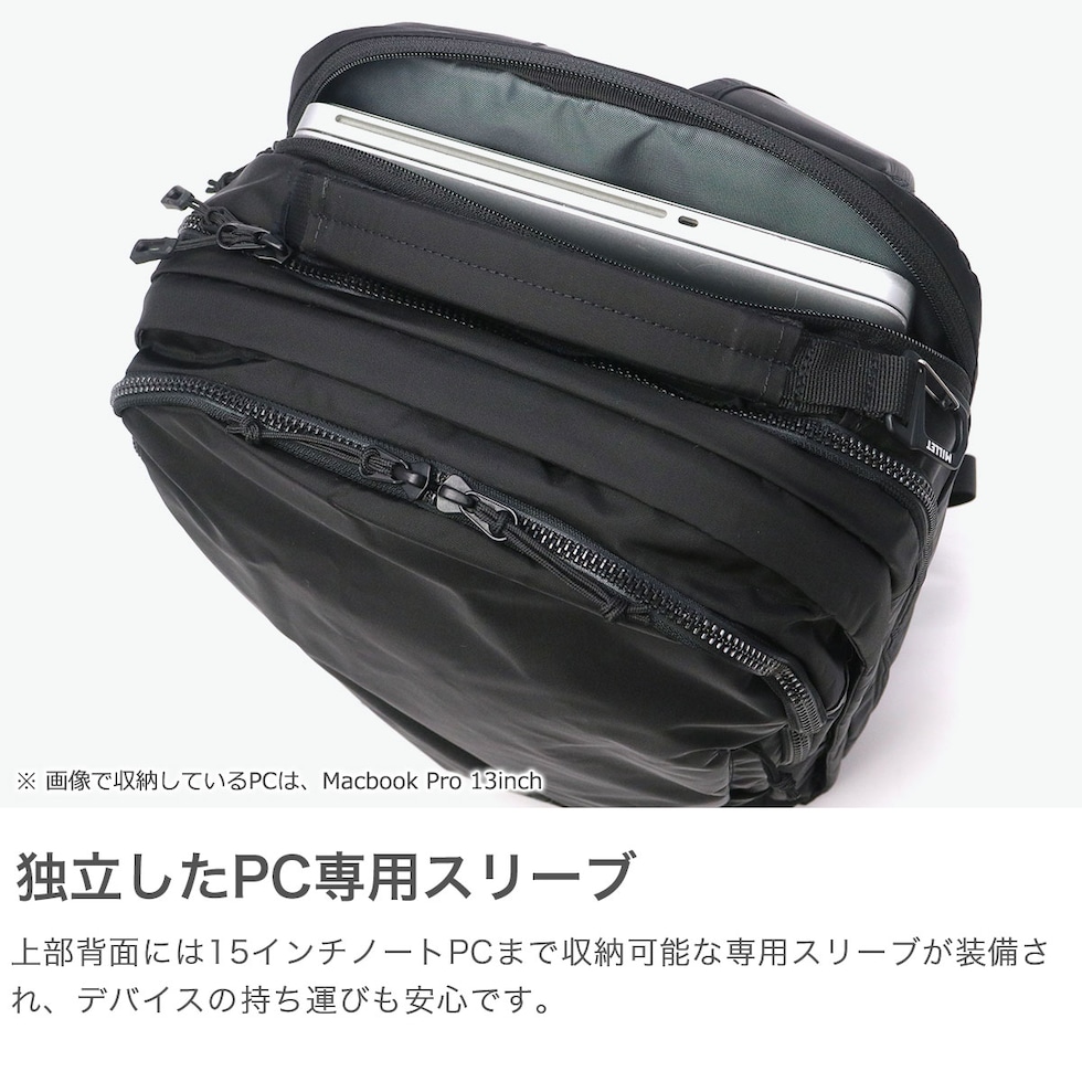 ポケット×3 PC収納×1 <内側> ポケット×6 ペンホルダー×2 <付属品> チェストストラップ×1 |