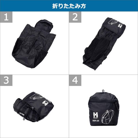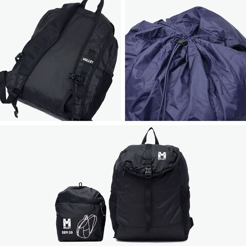 【正規品2年保証】 ミレー リュック メンズ レディース MILLET 軽量 小さめ 通勤 デイパック バックパック 折りたたみ ナイロン ポケッタブル A4 軽い ミニ 小さい サブリュック 20L 黒 携帯用 DEFI デフィ 20 MIS0789