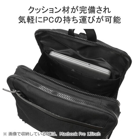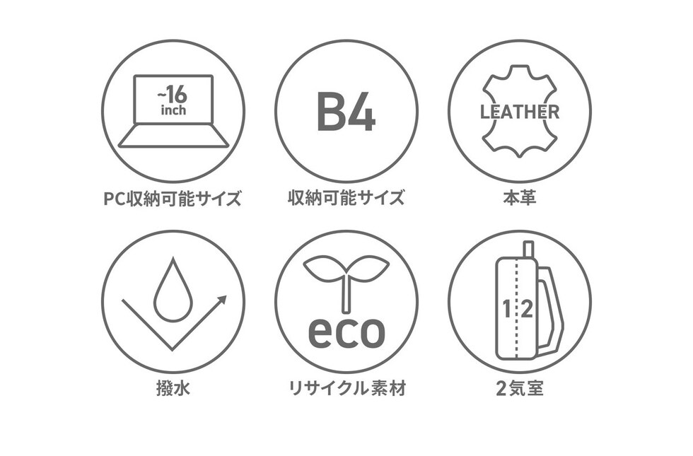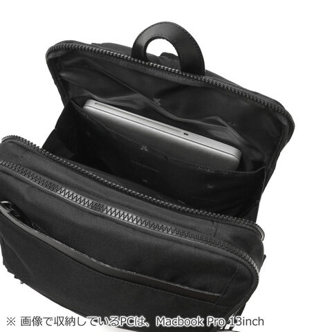 | 仕様 | <外側> ジップポケット(M)×2 スナップポケット(M)×1 ポケット(S)×2 <前面収納> PC収納×1 ジップポケット(M)×1 ポケット(S)×2 <背面収納> PC収納×1 |