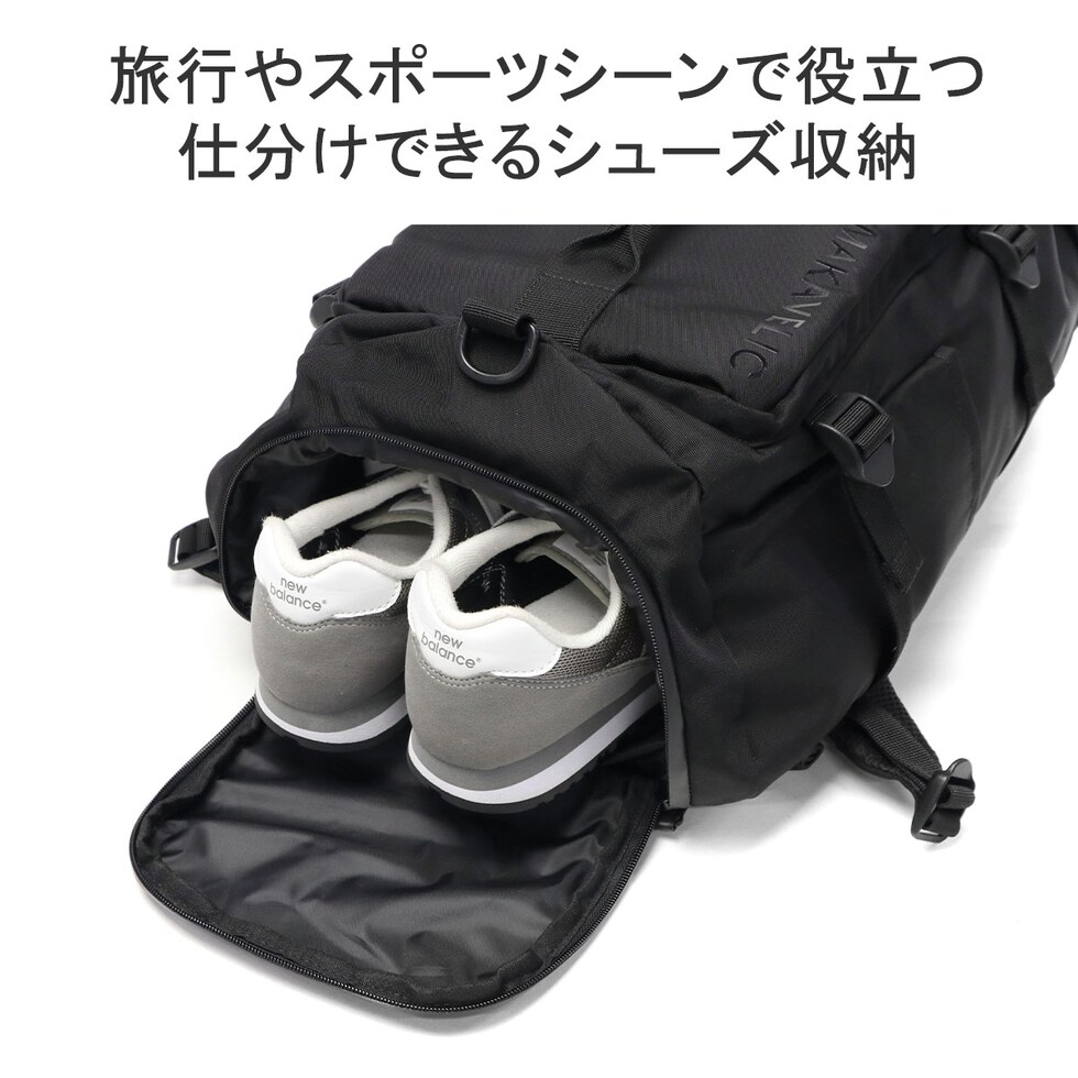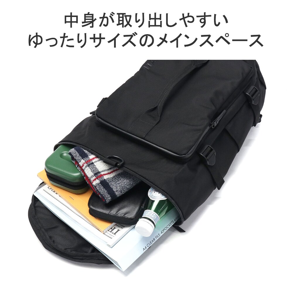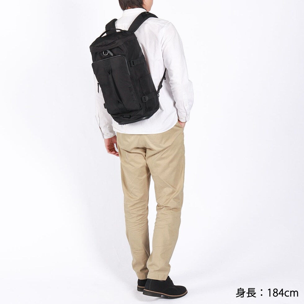 | 様々な場面にマッチする 高機能バックパック 機能性の高いビジネスバッグに定評のあるMAKAVELICが送り出す、旅行や出張に最適なバックパック。メイン収納には片側クッションが付いたデバイス専用スペース、底面には靴や濡れた衣類などを入れておける便利なシューズ収納を配置し、抜群の収納力を装備。手提げとしてはもちろん、リュックとしても、お持ちのショルダーベルトを付けて肩掛けとしても使用できるため、シーンに合わせてスタイルを選べる高機能アイテムです。 |