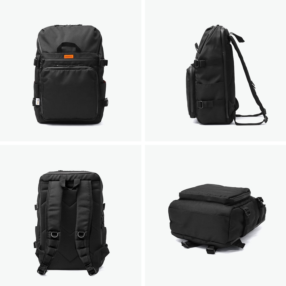 洗練されたバックパック 耐久性と撥水性を持つCORDURA EcoMade Canvas素材を使用した『CHASE/チェイス』シリーズのデイパック。定番の人気アイテムをアップデートし、使いやすさと収納力を両立した仕上がりに。オールブラックでコーディネートしやすく、2層構造のコンパートメントで荷物の整理がしやすい設計がポイントです。毎日の通勤・通学にも最適な、万能モデルとなっています。 |