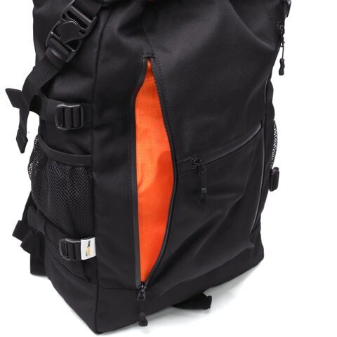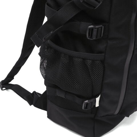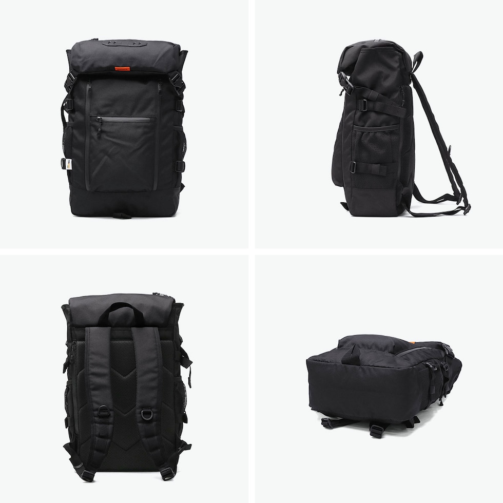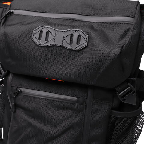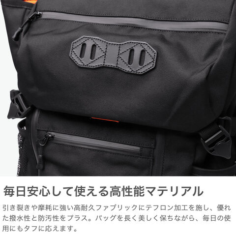 耐久性と撥水性を持つCORDURA EcoMade Canvas素材を使用した『CHASE/チェイス』シリーズのバックパック。裏地にオレンジを配した視認性の高いデザインと、オールブラックの落ち着いた外観が魅力です。B4サイズも収納可能なサイズ感でありながら、スリムなフォルムでスマートな印象に。複数のポケットの他、PC収納も装備するなど通勤通学や普段使いにも便利な、実用性重視のモデルになっています。