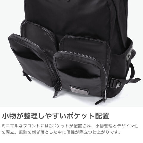 日常を支える優秀設計 モードとストリートが融合したデザインが魅力の『SIERRA(シエラ)』シリーズのデイパック。光沢感のあるN/ROBICナイロンを採用し、上質で洗練された印象を演出。高い機能性も兼ね備えたハイエンドラインです。弱撥水性能を備えており、各部に配置されたポケット、デイリー使いに程よいA4対応のサイズ感など、実用性にも優れています。シンプルな見た目なのでユニセックスで使用でき、通勤通学から休日の外出まで様々なシーンで活躍するアイテムです。 |