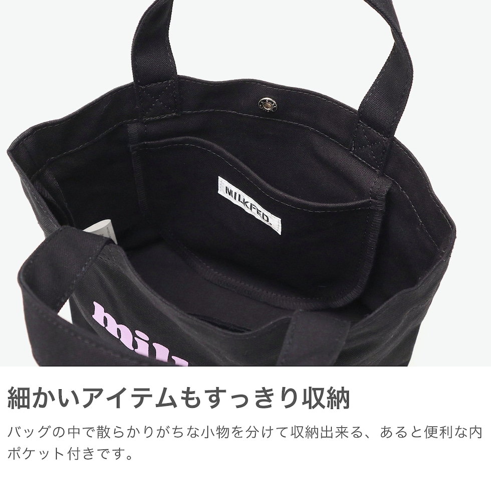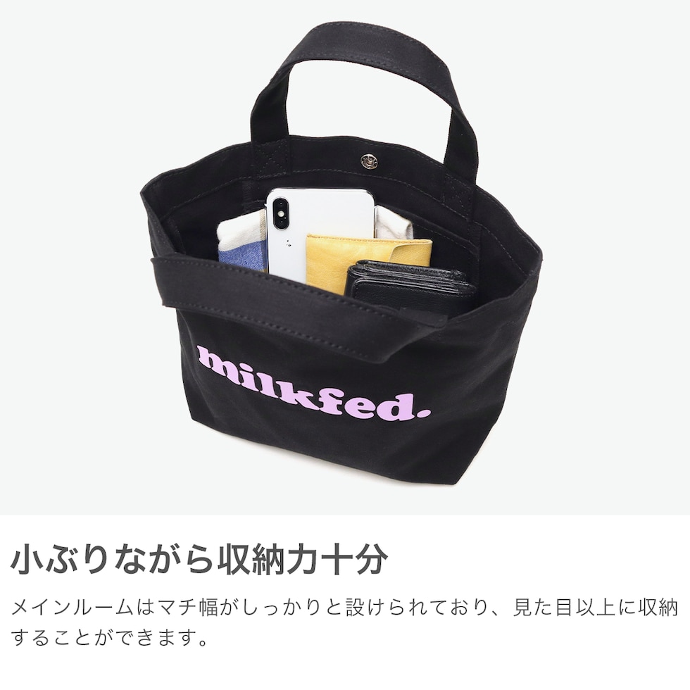 ミルクフェド トートバッグ レディース キャンバス ブランド MILKFED. 小さめ 軽量 軽い マチ 横 横型 ミニ ミニトート お弁当バッグ 可愛い かわいい おしゃれ カジュアル OUI MINI TOTE 103251053002