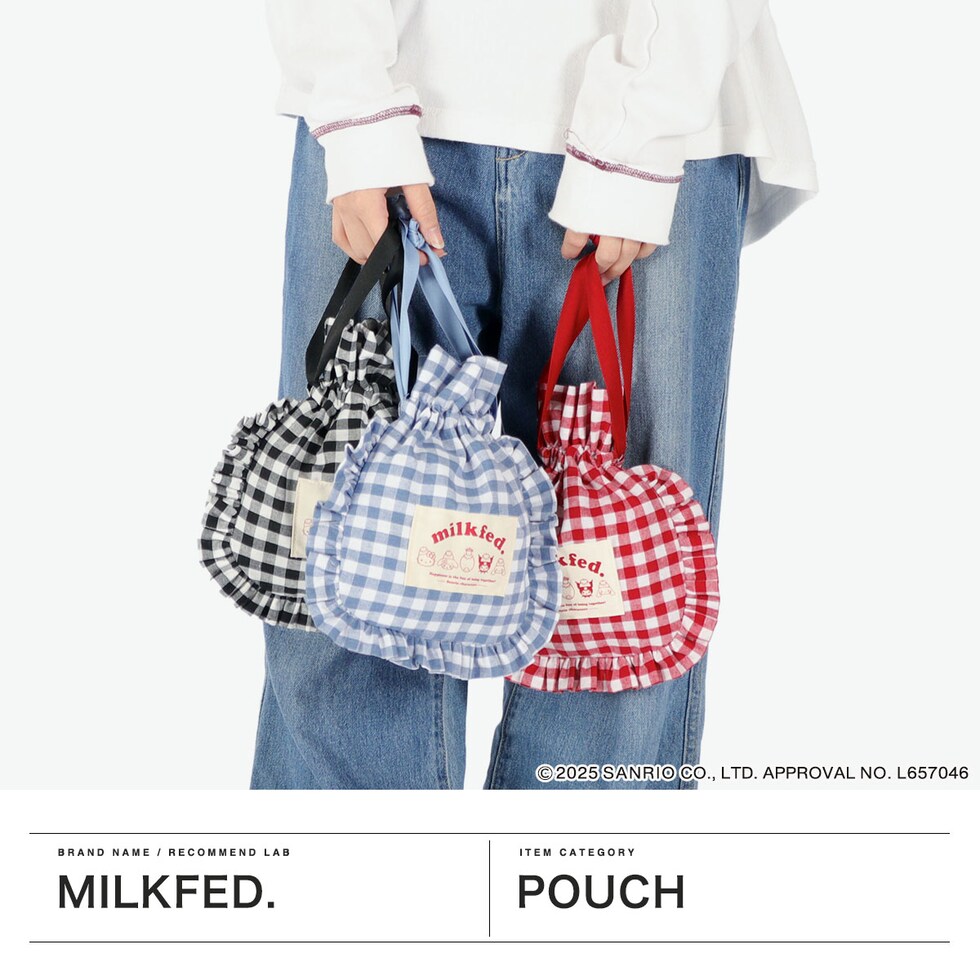【メール便】ミルクフェド ポーチ 小物入れ おしゃれ かわいい MILKFED. サンリオ コラボ ブランド キャラクター 可愛い 巾着 レディース 女子 MILKFED.× SANRIO CHARACTERS DRAWSTRING POUCH 103251054011