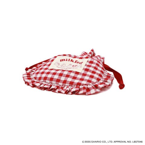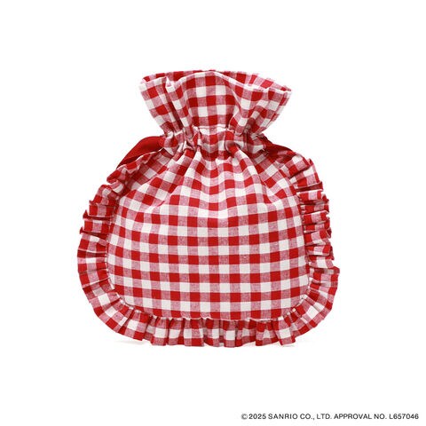 サンリオコラボポーチ サンリオキャラクターズとMILKFED.によるスペシャルなコラボレーションアイテムが発売しました。いちご新聞50周年を記念し、いちごの王さまと一緒にハローキティ・マイメロディ・クロミ・シナモロールがお揃いのいちご帽子で大集合。ガーリーなフリル&ギンガムチェックが大人かわいい、コスメや小物の収納にぴったりの巾着ポーチです。 |