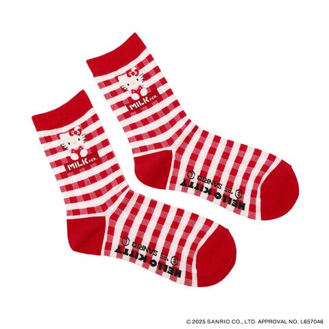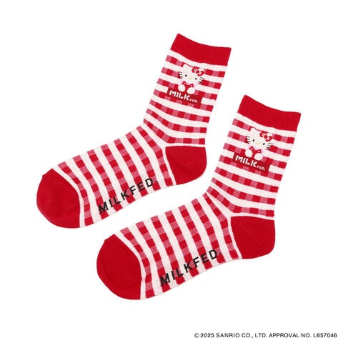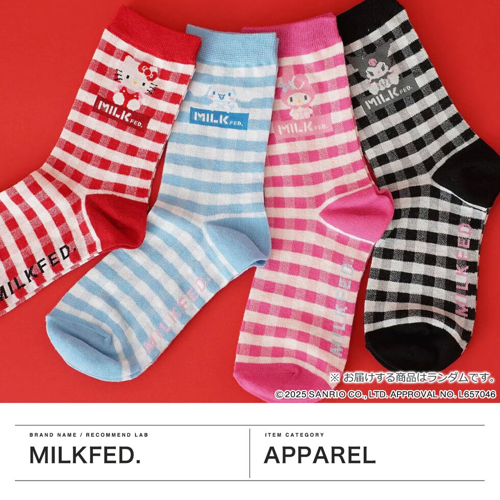 【メール便】ミルクフェド 靴下 レディース MILKFED. サンリオ コラボ ソックス ブランド キャラクター 可愛い チェック柄 ギンガムチェック ランダム 日本製 MILKFED.× SANRIO CHARACTERS SOCKS 103251054012