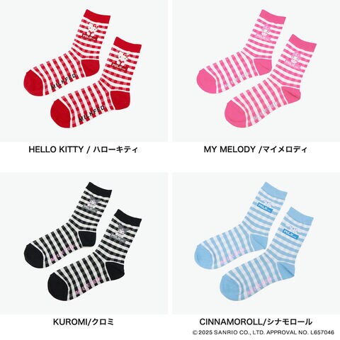 MILKFED.×サンリオ靴下 サンリオキャラクターズとMILKFED.によるスペシャルなコラボレーションアイテムが発売!ギンガムチェックが可愛い特別感のある靴下です。ハローキティ、マイメロディ、クロミ、シナモロールの中から1つお届け。どれが出るかは届いてからのお楽しみです♪ |