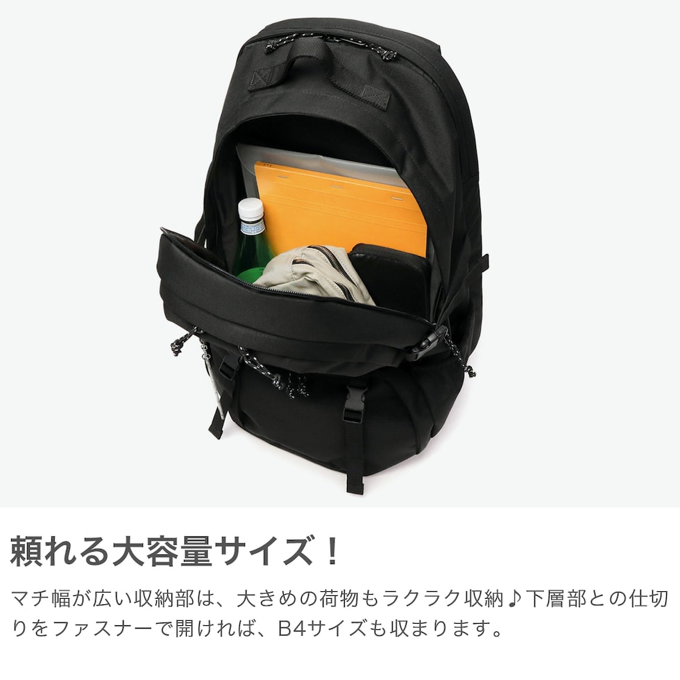 収納力抜群バックパック いつでもどこへでも、通勤通学のデイリー使いから旅行までライフスタイルに合わせて選べる『DAILY』シリーズ。こちらは、すっきりとしたデザインながらしっかりと荷物を収納することが出来る37L容量のバックパックです。高いクッション性を備えたPC収納やシューズ収納など充実の機能を搭載しています。 |