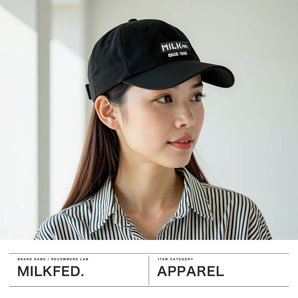 ミルクフェド キャップ レディース 深め MILKFED. 帽子 ブランド 無地 ロゴ シンプル かわいい おしゃれ BAR刺繍ロゴ 6パネルキャップ リップストップ シンプル カジュアル BAR RIPSTOP CAP 103252051001