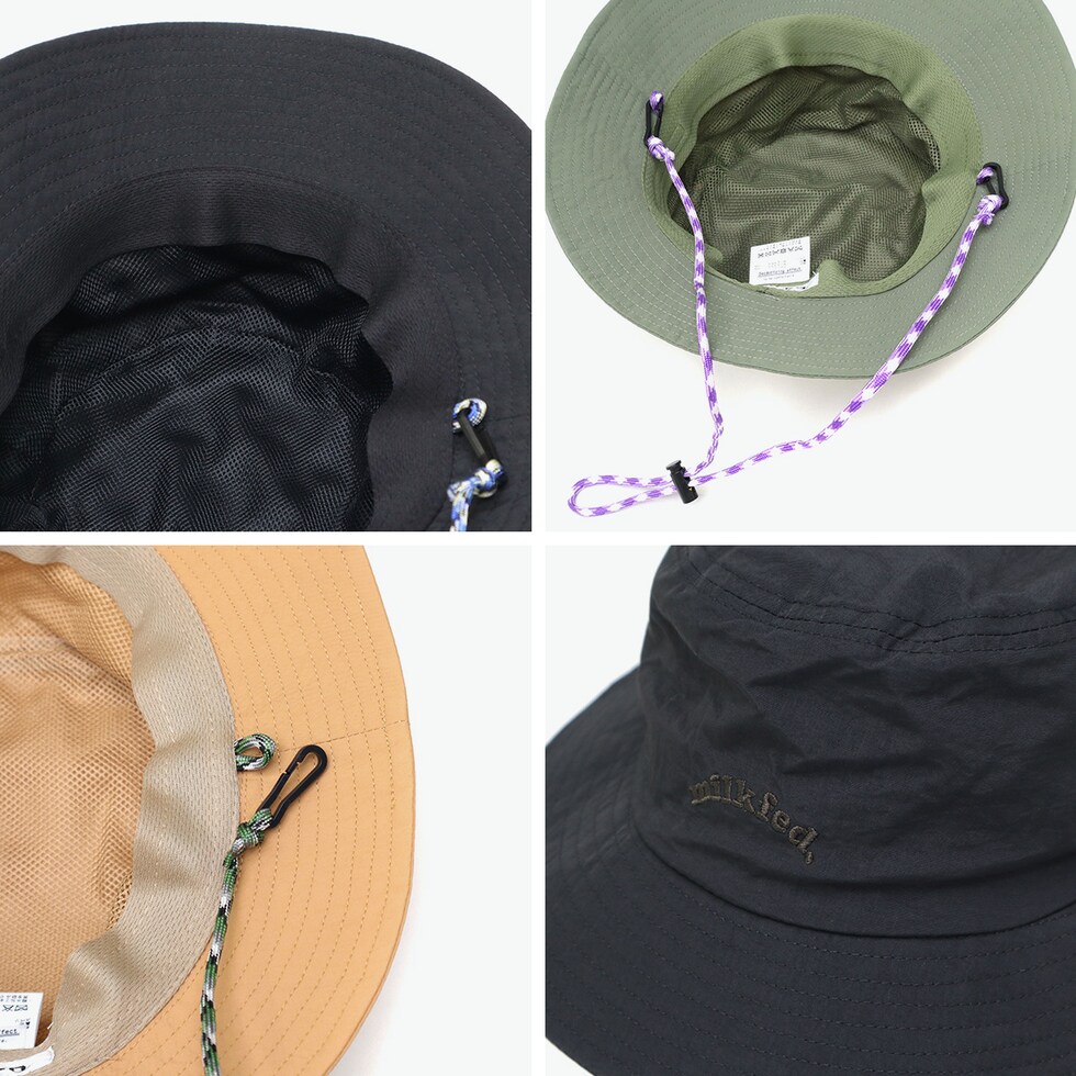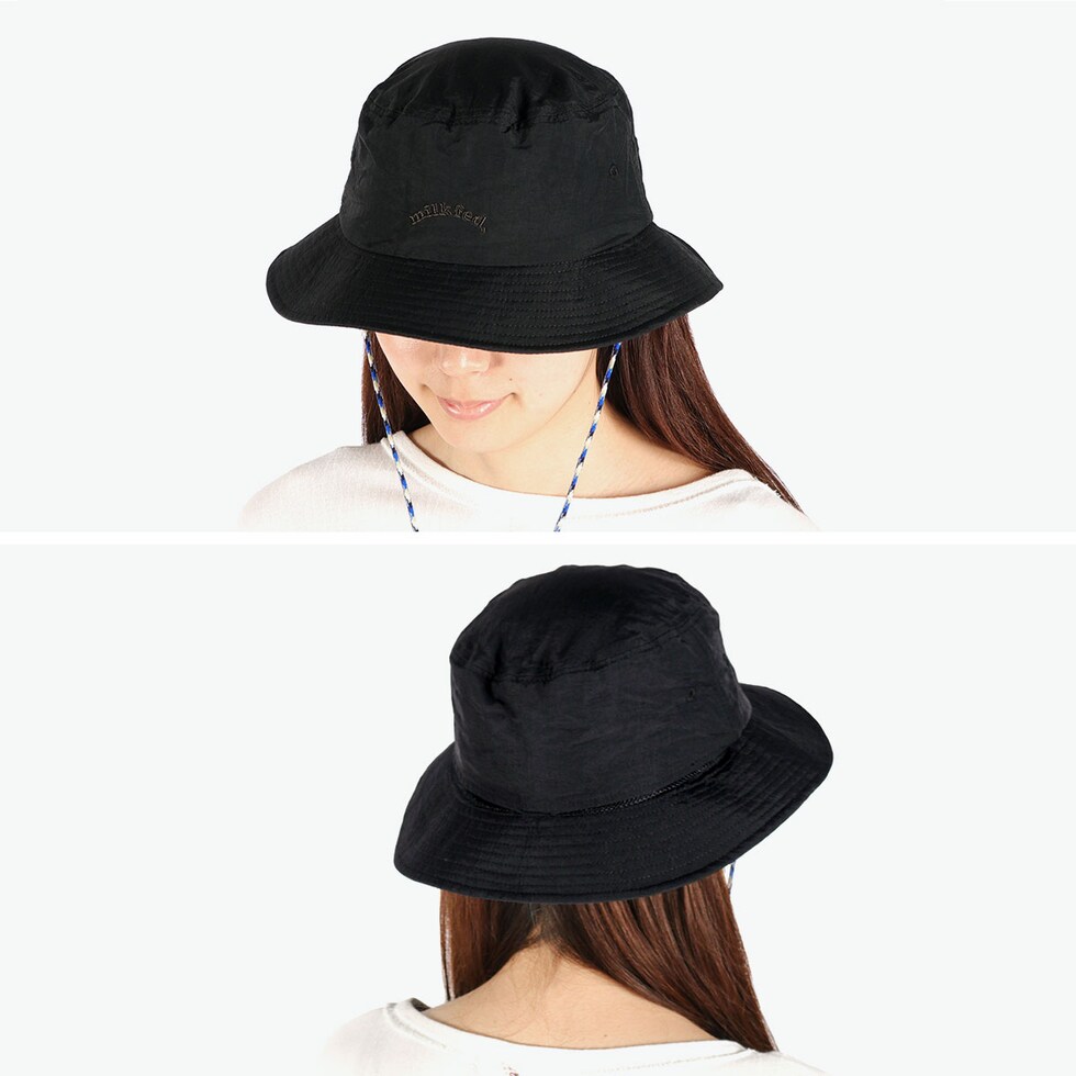 | 被る日傘のような 快適で可愛いハット MILKFED.のロゴ刺繍入りバケットハットです。UVカット率99.9%・UPF55%で紫外線対策に最適。吸水速乾・撥水・消臭・抗菌機能など頼れる機能が満載です。取り外し可能なマルチカラーコード付きで、アウトドアや旅行にぴったりのアイテムです。 |