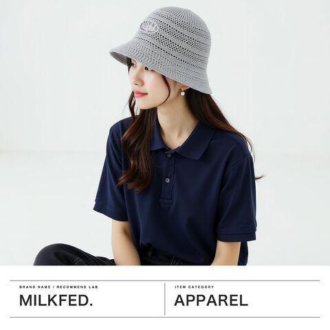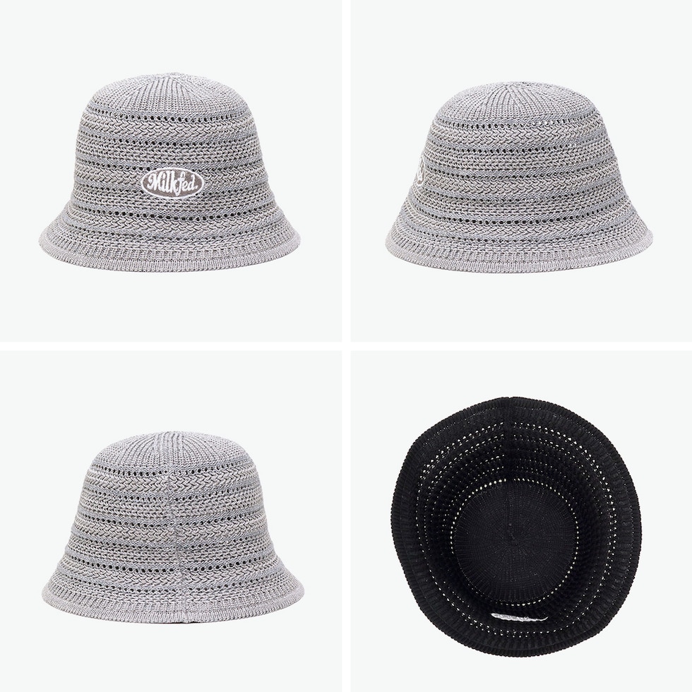 ミルクフェド ハット レディース MILKFED. 帽子 夏 バケットハット ロゴ 刺繍 シンプル ニット おしゃれ 透かし編み 深め ファッション小物 ブランド LOGO EMBROIDERY KNIT HAT 103252051009
