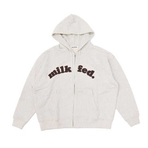 ミルクフェド パーカー レディース 大きいサイズ ジップ MILKFED. アウター 秋 冬 おしゃれ 女子 かわいい ロゴ ファスナー ジップパーカー ブランド フーディー ARCH COOPER LOGO ZIP UP HOODIE 103253012001