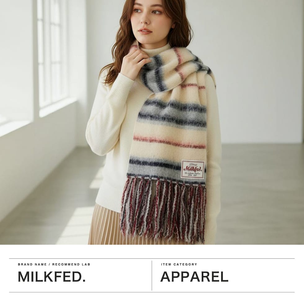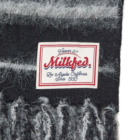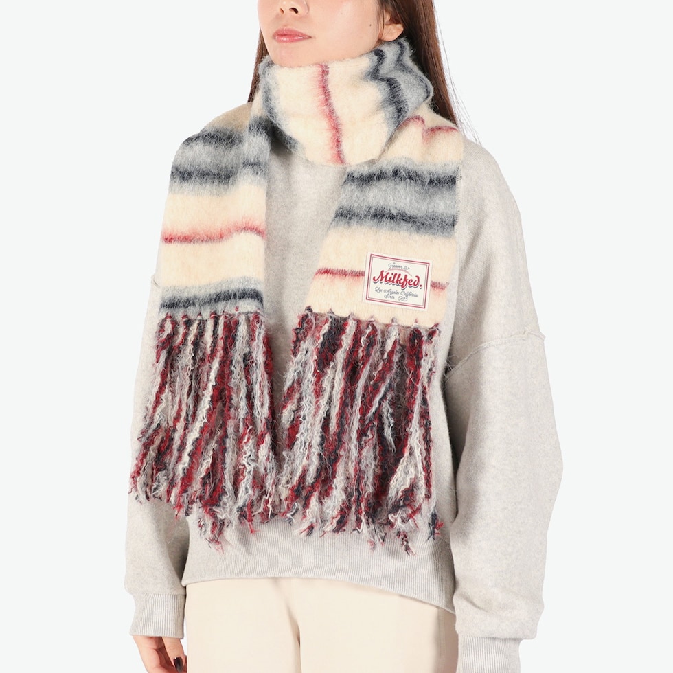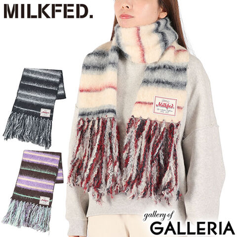ミルクフェド マフラー レディース MILKFED. ブランド 大判 大きめ ボーダー ストライプ フリンジ カジュアル かわいい おしゃれ ふわふわ 防寒 起毛 軽い 女性 STRIPED FRINGE STOLE 103254054002