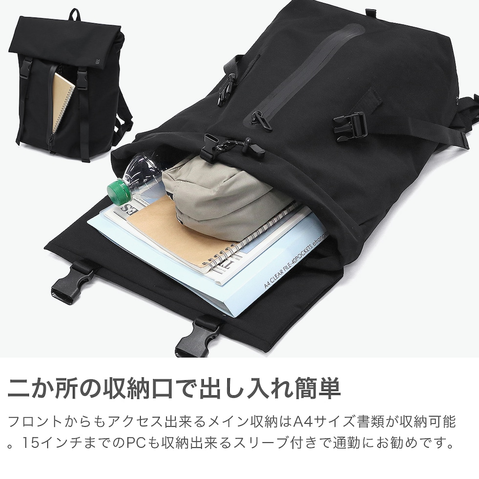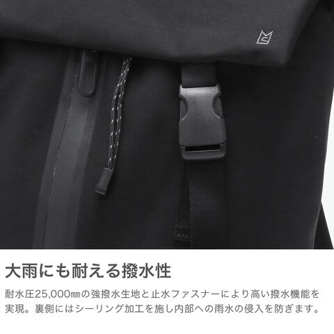 どんなシーンにも寄りそう、耐水性とデザイン性を併せ持つシリーズ『LIKID/リキッド』の15L容量バックパック。柔らかくマットな素材感がカジュアルなコーディネートにも合わせやすく、ジェンダーレスなデザインに仕上がっています。大雨にも耐える強撥水生地と止水ファスナーなど、高い撥水機能が備わった頼もしいアイテムです