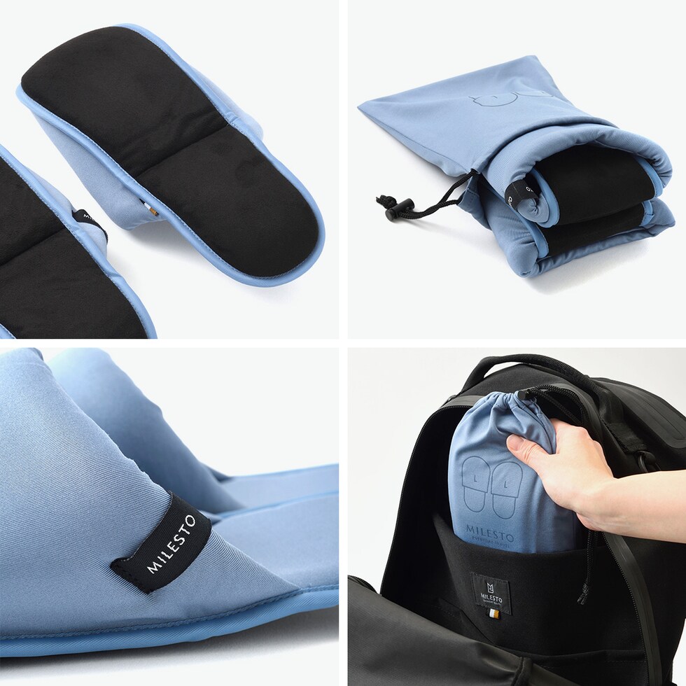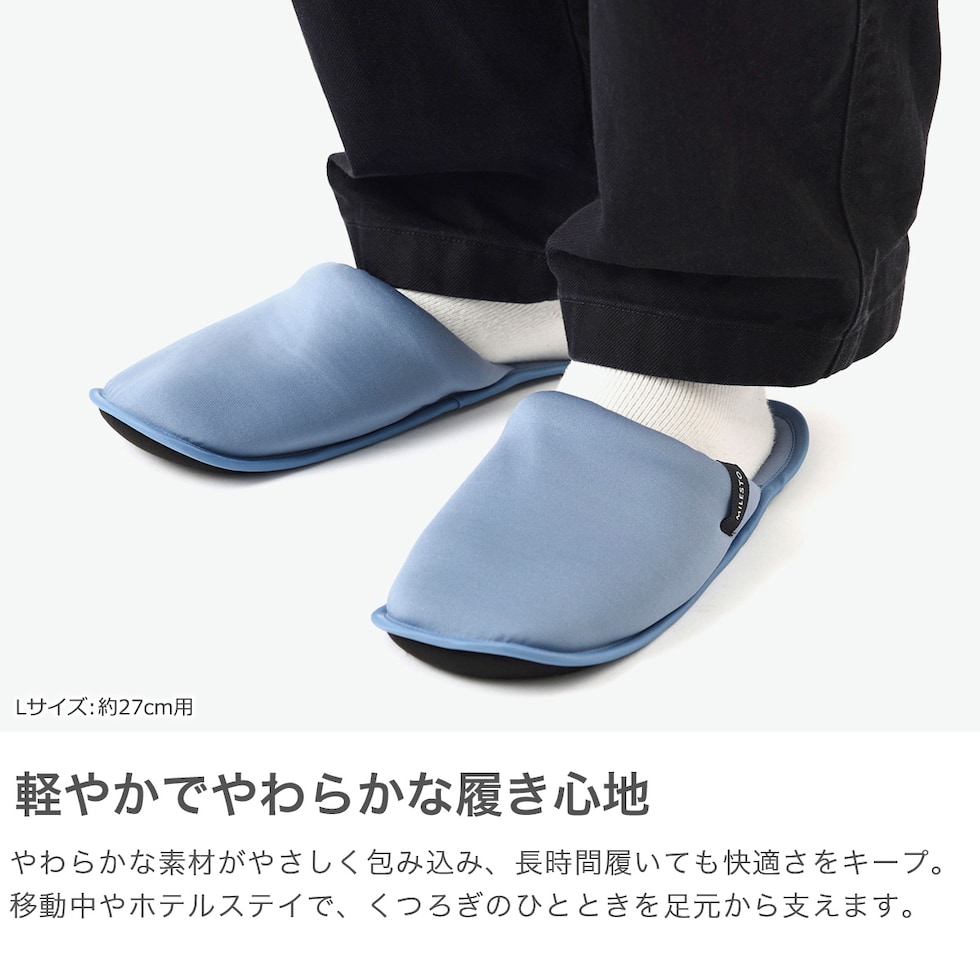 しなやかで柔らかく、折りたたんでコンパクトに収納しやすい素材の携帯スリッパ。ふっくらとしたやさしい履き心地で、長時間履いても快適さをキープ。移動中やホテルステイで、くつろぎのひとときを足元から支えます。洗える素材を採用し、清潔さを保てるのも魅力。収納用の巾着付きで、旅行や出張、式典などさまざまなシーンで活躍します。