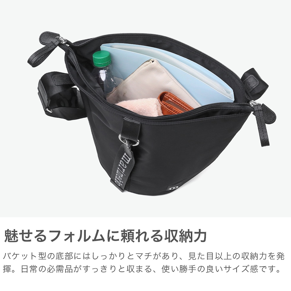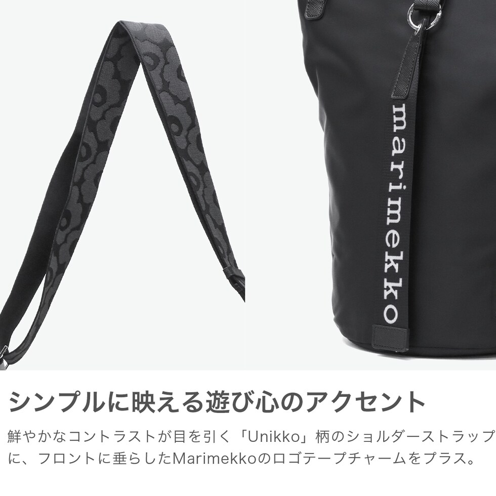 【日本正規品】 マリメッコ ショルダーバッグ レディース ブランド 大容量 marimekko ウニッコ 斜めがけ 大人 軽量 ナイロン A4 バケツ型 ファスナー付き 大きめ カジュアル 斜めがけバッグ かわいい 黒 All Day Bucket Solid