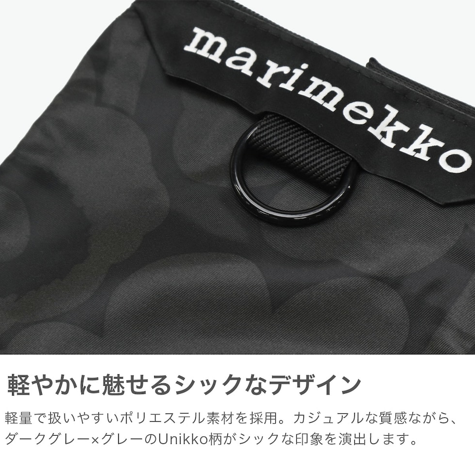 かわいいUnikko柄 『marimekko』らしい"Unikko柄"がシックでカジュアルな仕上がりのミニショルダーバッグ。軽やかで扱いやすいリサイクルポリエステル生地を採用したサステナブルなアイテム。スマートフォンを入れたり、最小限の荷物でアクティブに行動したい方にぴったりのコンパクトなサイズ感となっています。 |