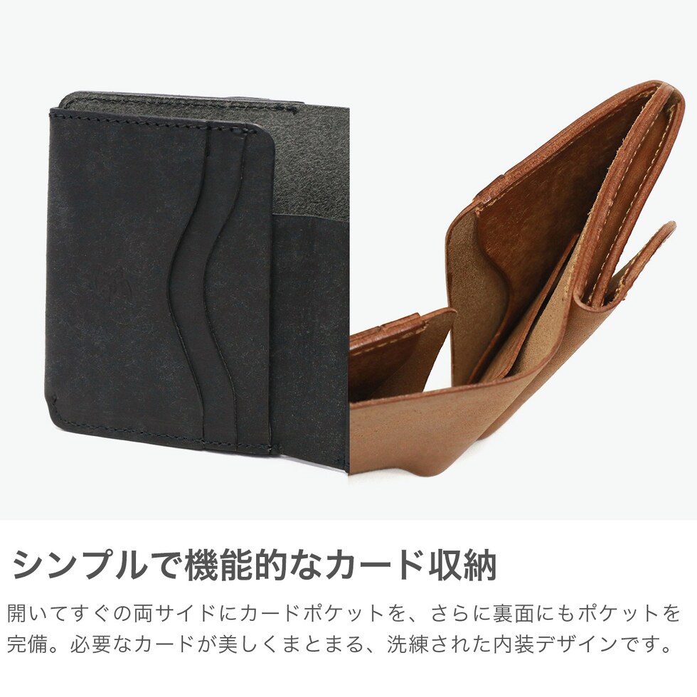 二つ折りウォレット イタリア・フィレンツェ生まれのプエブロレザーを使用した二つ折りウォレット。プエブロレザーは、生後2年以上の雌牛をベジタブルタンニンで鞣した後、ニートフットオイルをじっくりと浸透させる“バケッタ製法”で作られた革。コンパクトながら優れた収納力を備えた、機能美あふれる一品です。 |