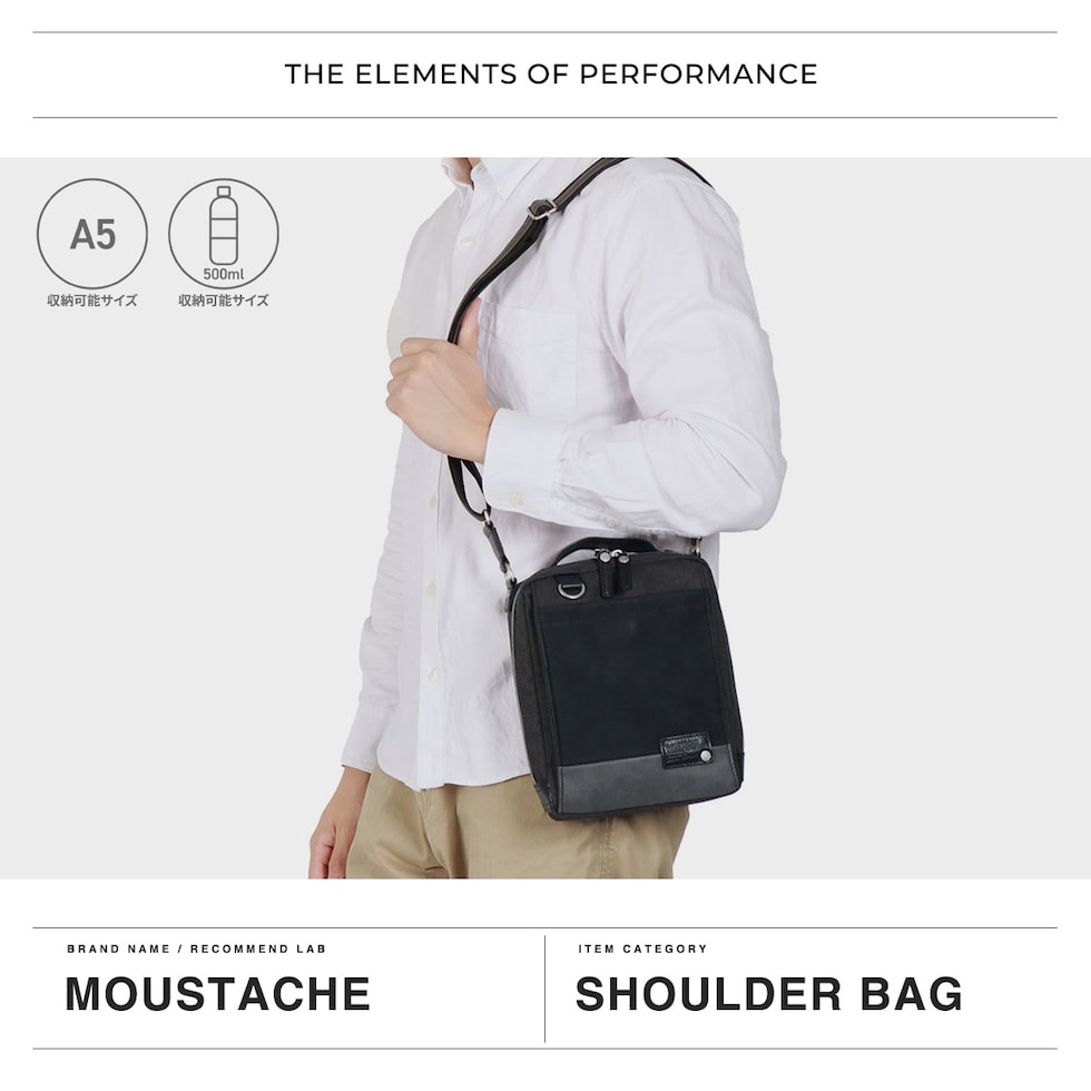 ムスタッシュ ショルダーバッグ メンズ 斜めがけバッグ ブランド MOUSTACHE バッグ 斜め掛け 斜めがけ 小さめ 軽い 軽量 40代 50代 60代 A5 おしゃれ ミニショルダーバッグ 縦型 シンプル JOH-4275