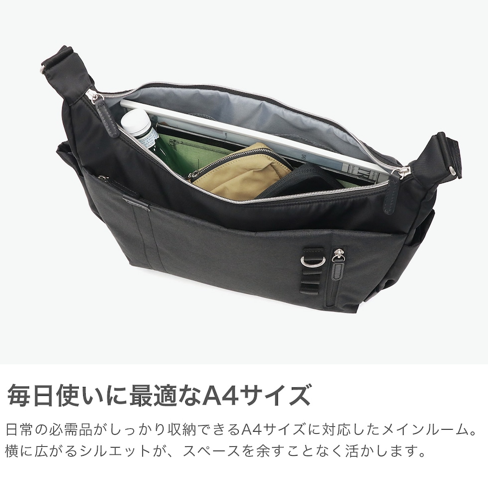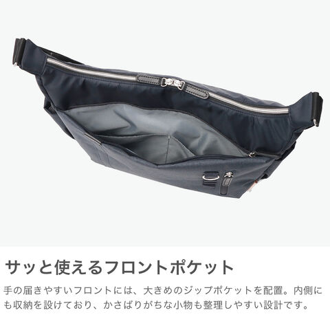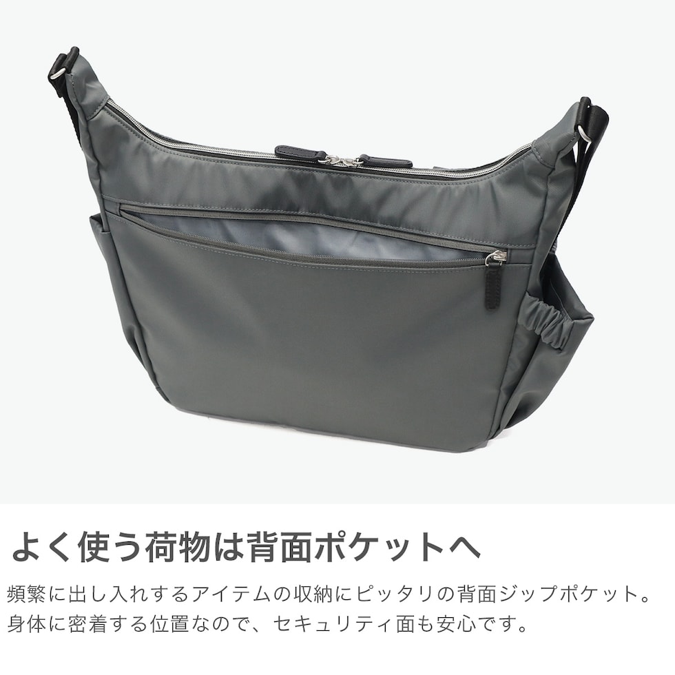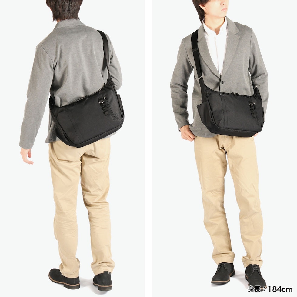 アクティブな毎日の相棒 ポリエステル生地を基調にし、杢調素材をアクセントにした『BET』シリーズのショルダーバッグ。A4サイズも収納可能で旅行や日常使いにも活躍します。 |