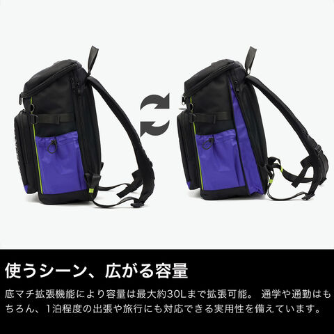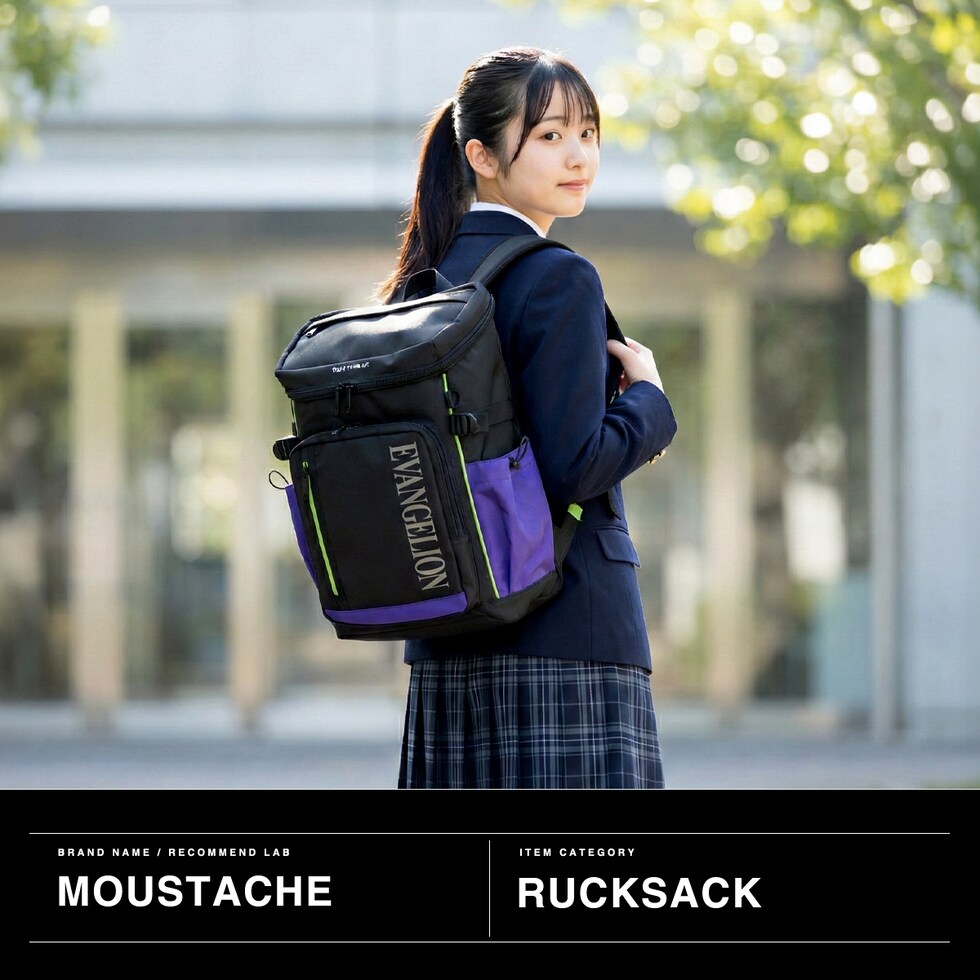 | 日常とエヴァが融合 拡張BOXリュック エヴァンゲリオンとmoustacheのNEWコラボレーションから、BOX型バックパックが登場。通勤・通学に使いやすいブラックをベースに、初号機・2号機・零号機をイメージしたカラーをさりげなく取り入れたデザインです。内装には各機体のモチーフカラーを配し、開いた瞬間にも世界観を楽しめます。底マチ拡張により最大約30Lまで容量を拡張でき、通勤・通学から1泊程度の出張や旅行まで幅広く対応します。 |