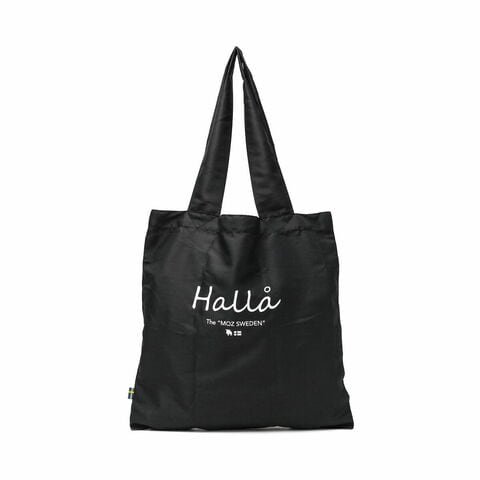 荷物が増えた時のサブバッグとして使えるmoz(モズ) の折りたたみエコバッグ。スウェーデン語で「Hello」を意味する単語をプリントしたデザインと、さりげなくあしらわれたスウェーデン国旗のピスネームがポイントです。軽量かつ小さくたためるパッカブル仕様で、いつもバッグの中に携帯しておけます。