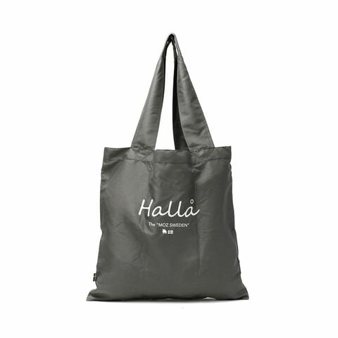 荷物が増えた時のサブバッグとして使えるmoz(モズ) の折りたたみエコバッグ。スウェーデン語で「Hello」を意味する単語をプリントしたデザインと、さりげなくあしらわれたスウェーデン国旗のピスネームがポイントです。軽量かつ小さくたためるパッカブル仕様で、いつもバッグの中に携帯しておけます。