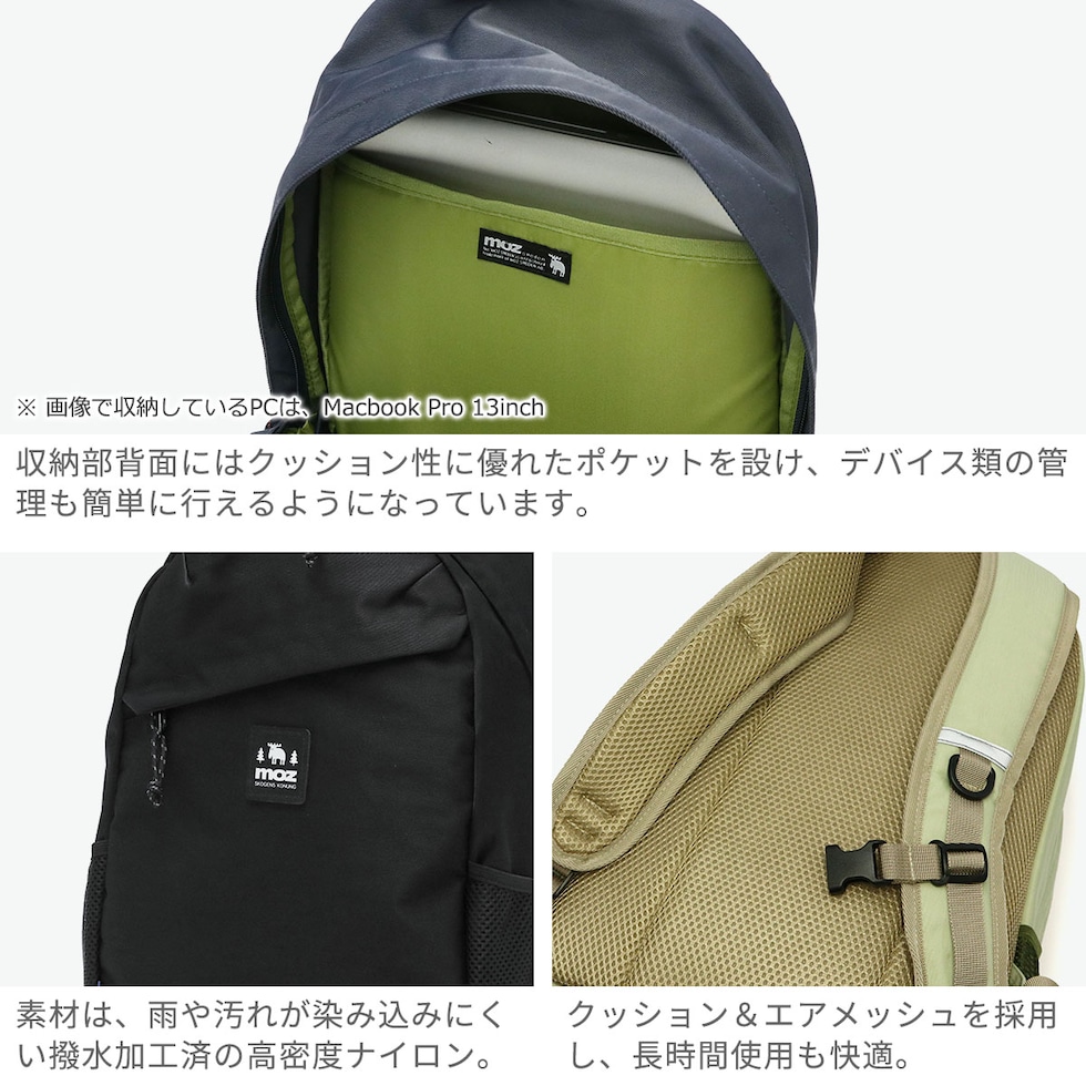 モズ リュック レディース 通勤 通学 moz リュックサック バッグ 軽量 軽い おしゃれ 旅行 黒 パソコン PC シンプル ブランド かわいい カジュアル ナイロン A4 17L 撥水 ZZOK 多機能リュックサック ZZOK-02